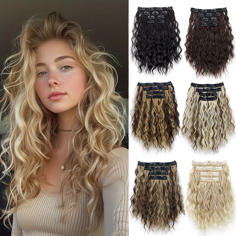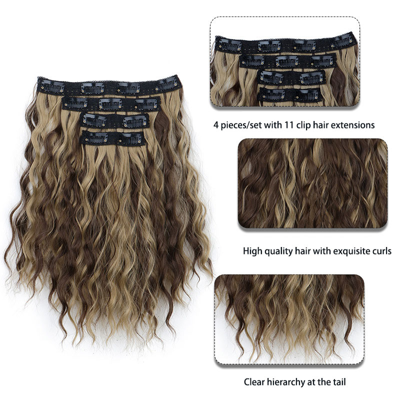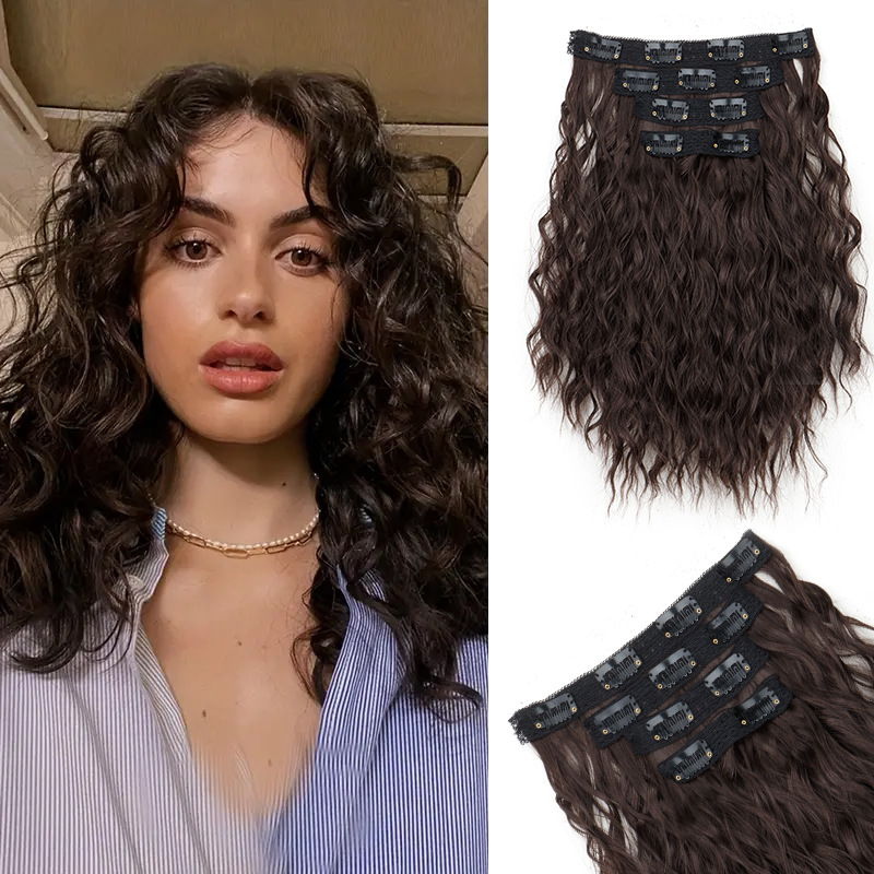 4pcs Extensões De Cabelo Encaracolado Ondulado Clipe Sintético Resistente Ao Calor Para Mulheres