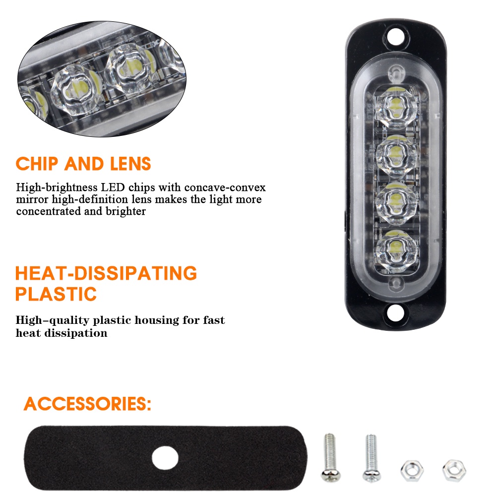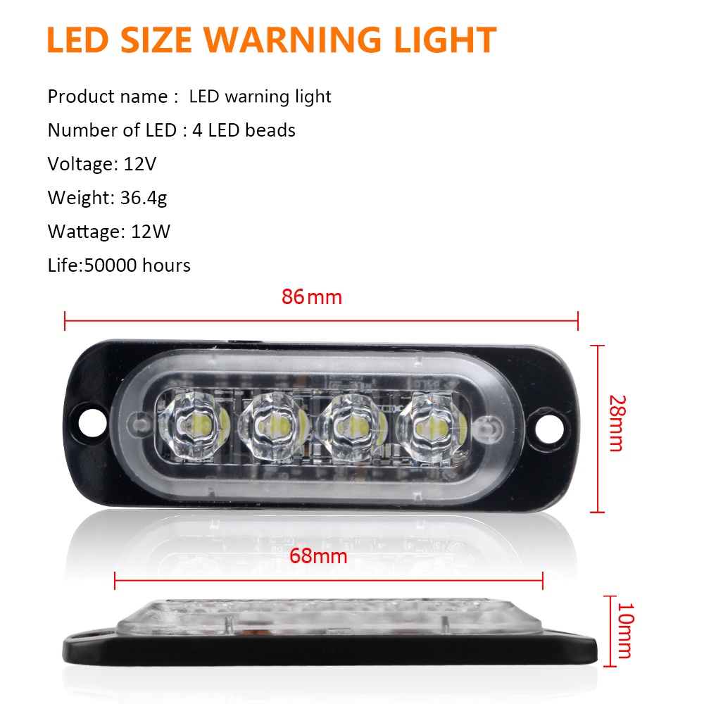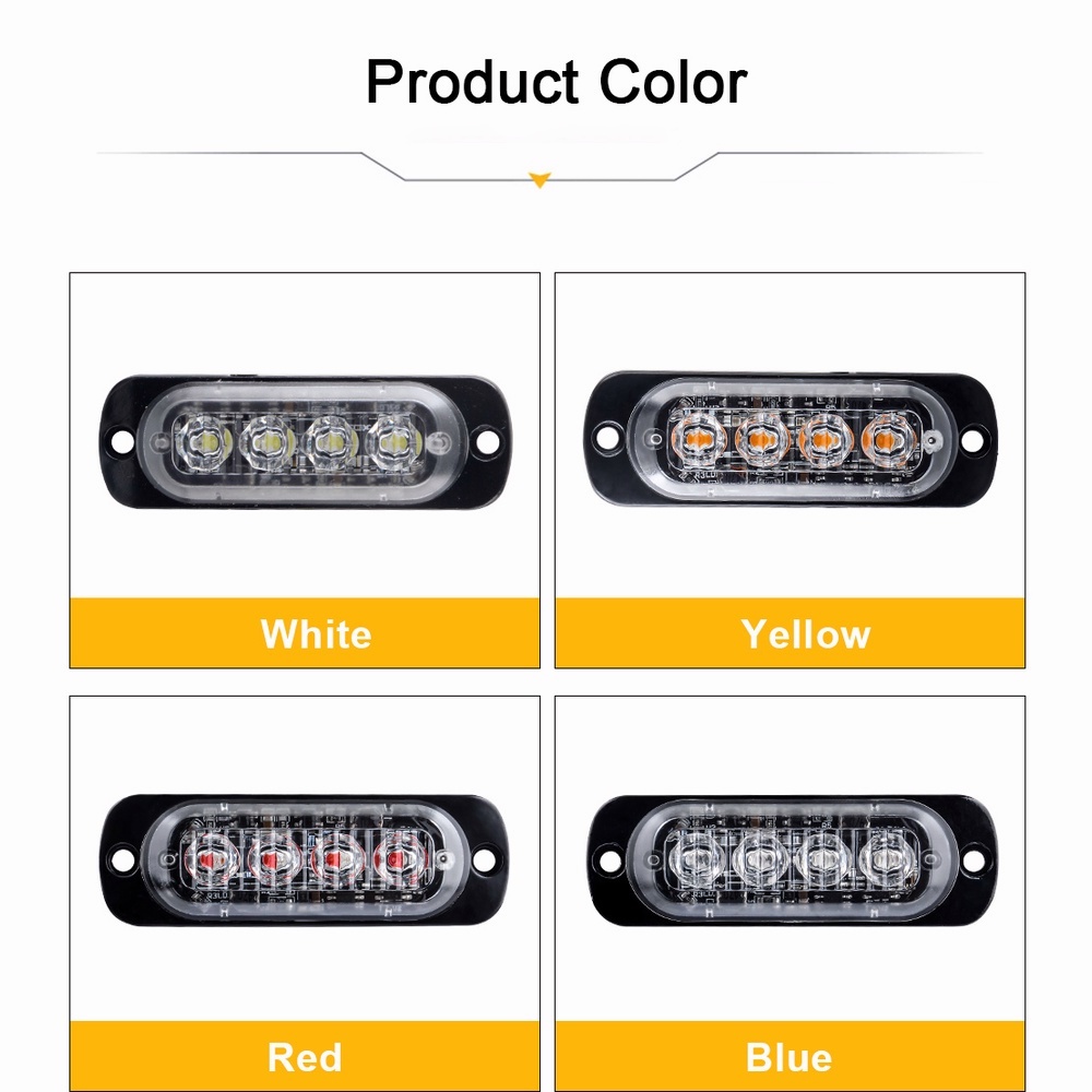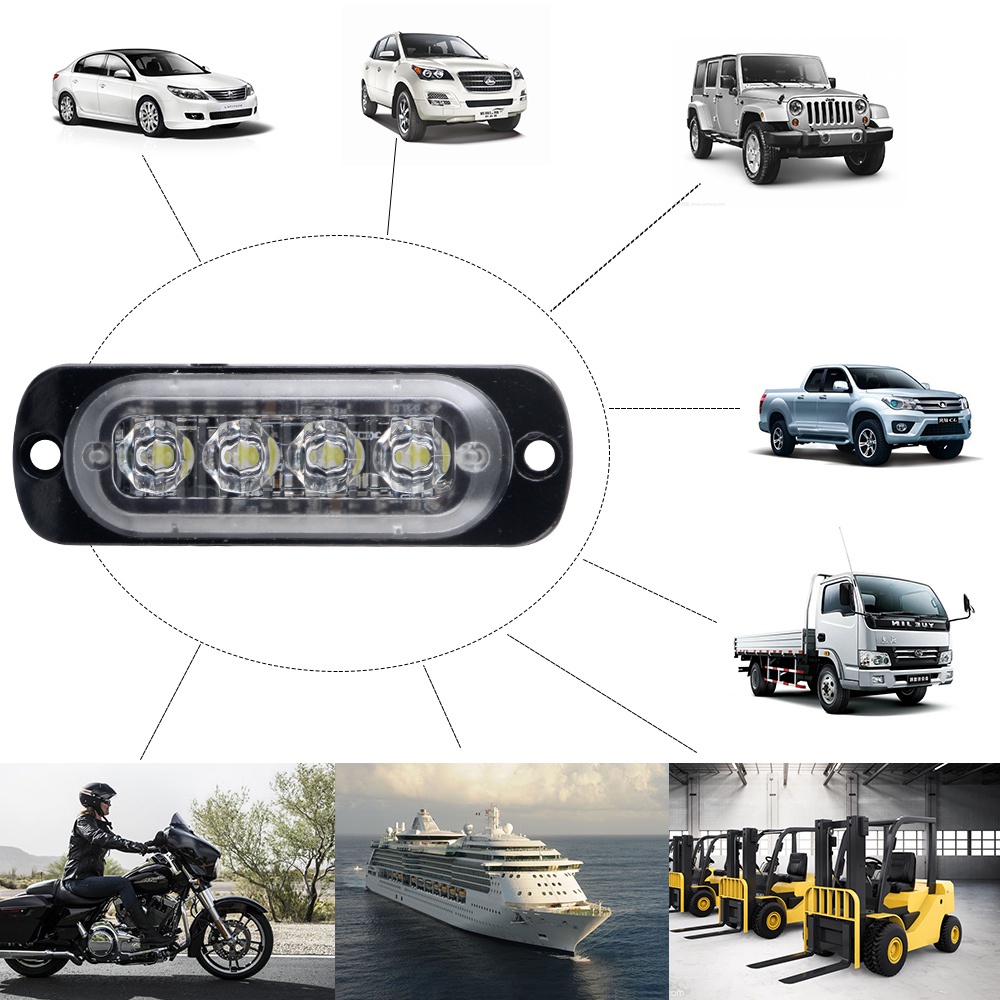 1Piece Luz de Sinalização de Emergência 4 LED Grelha de Advertência 12V para TRUCK, Motocicleta e SUV