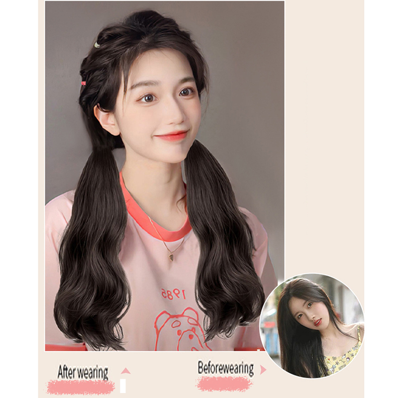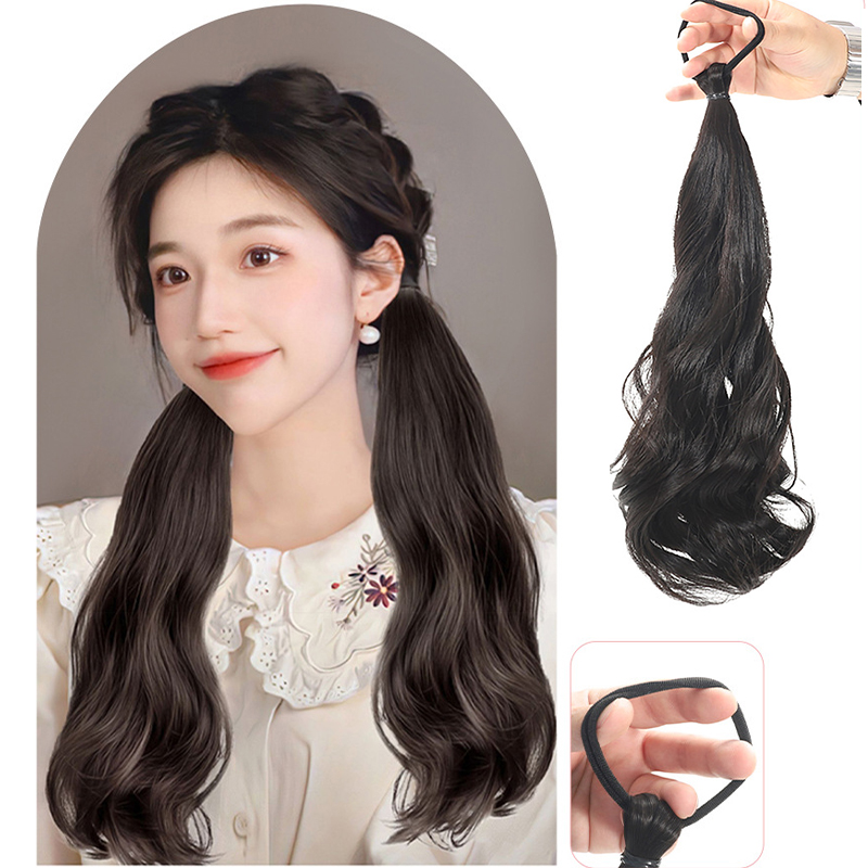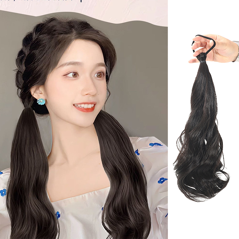 Peruca De Rabo De Cavalo Reto-Acessório De Faixa De Couro Para Estilos Duplos