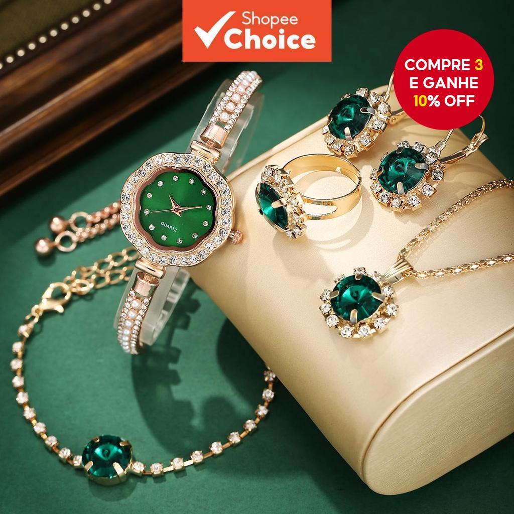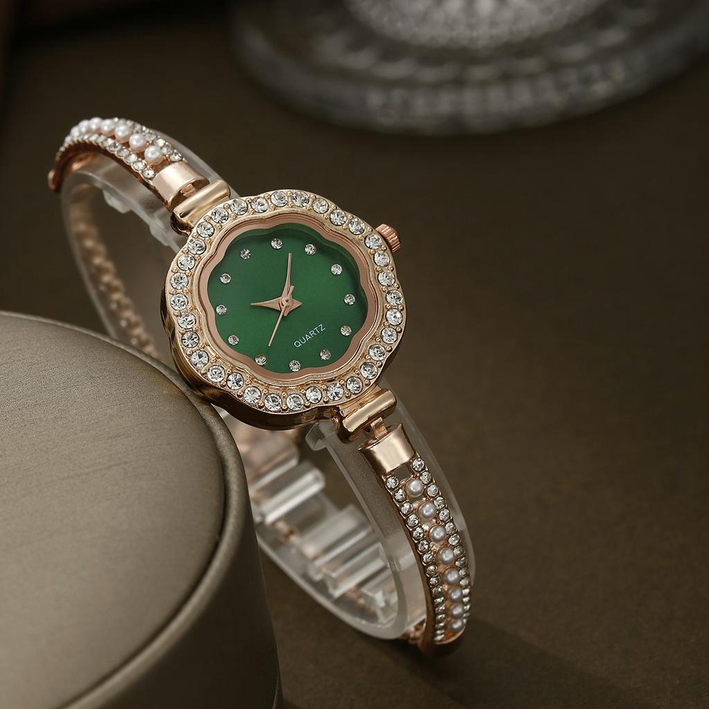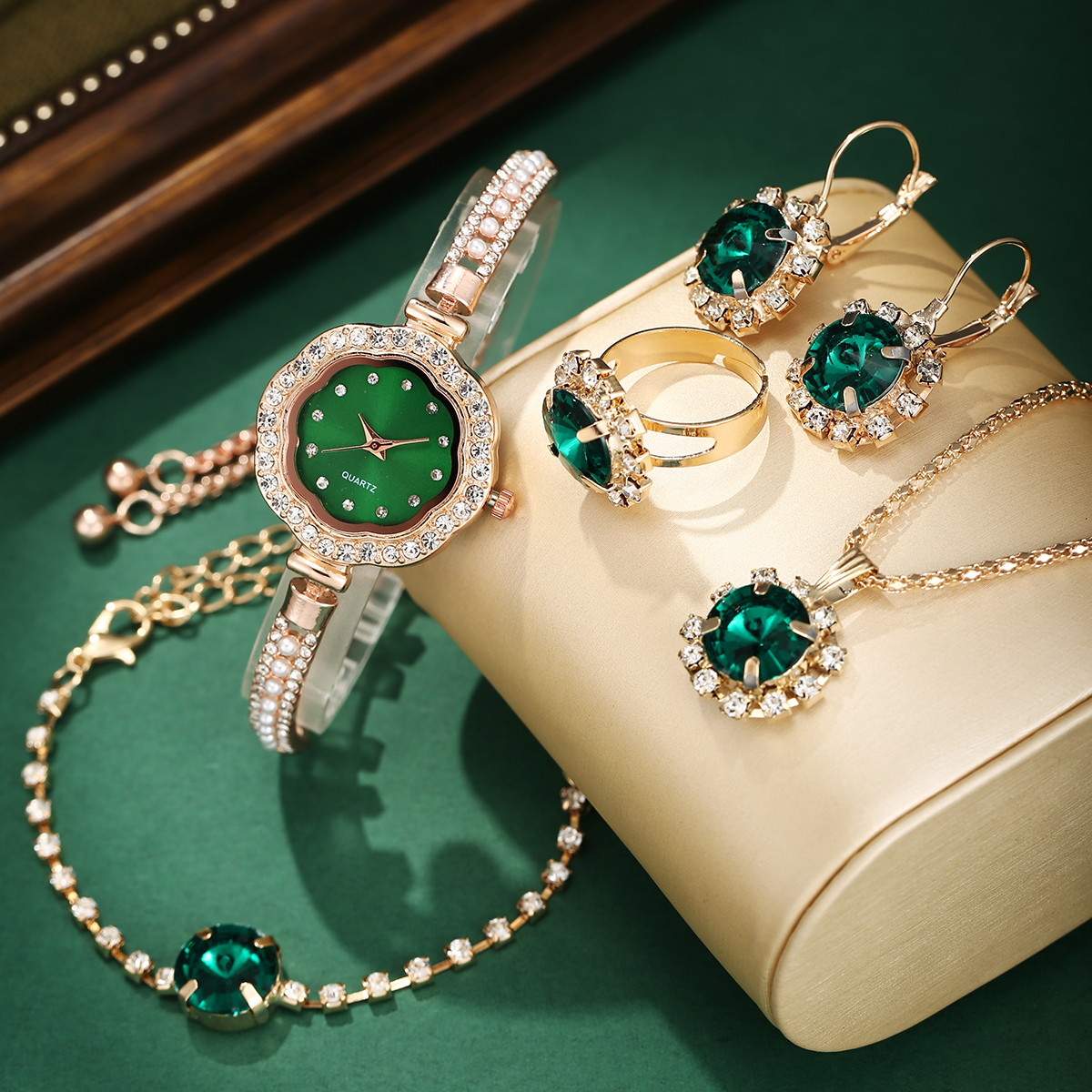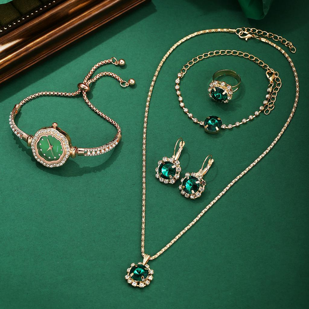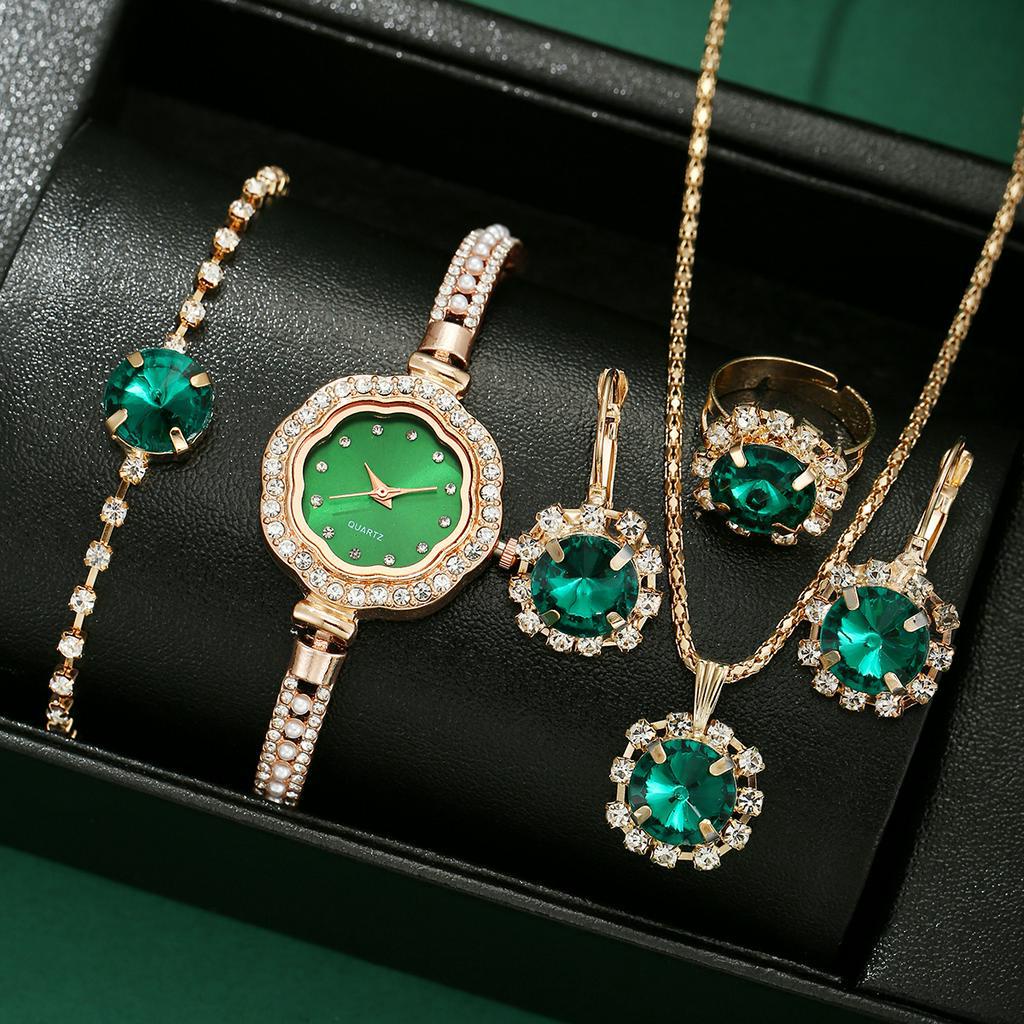 Novo Relógio De Pulseira De Quartzo Minimalista De Luxo Com Conjunto De Joias De Strass Glamoroso De 5 Peças , Perfeito