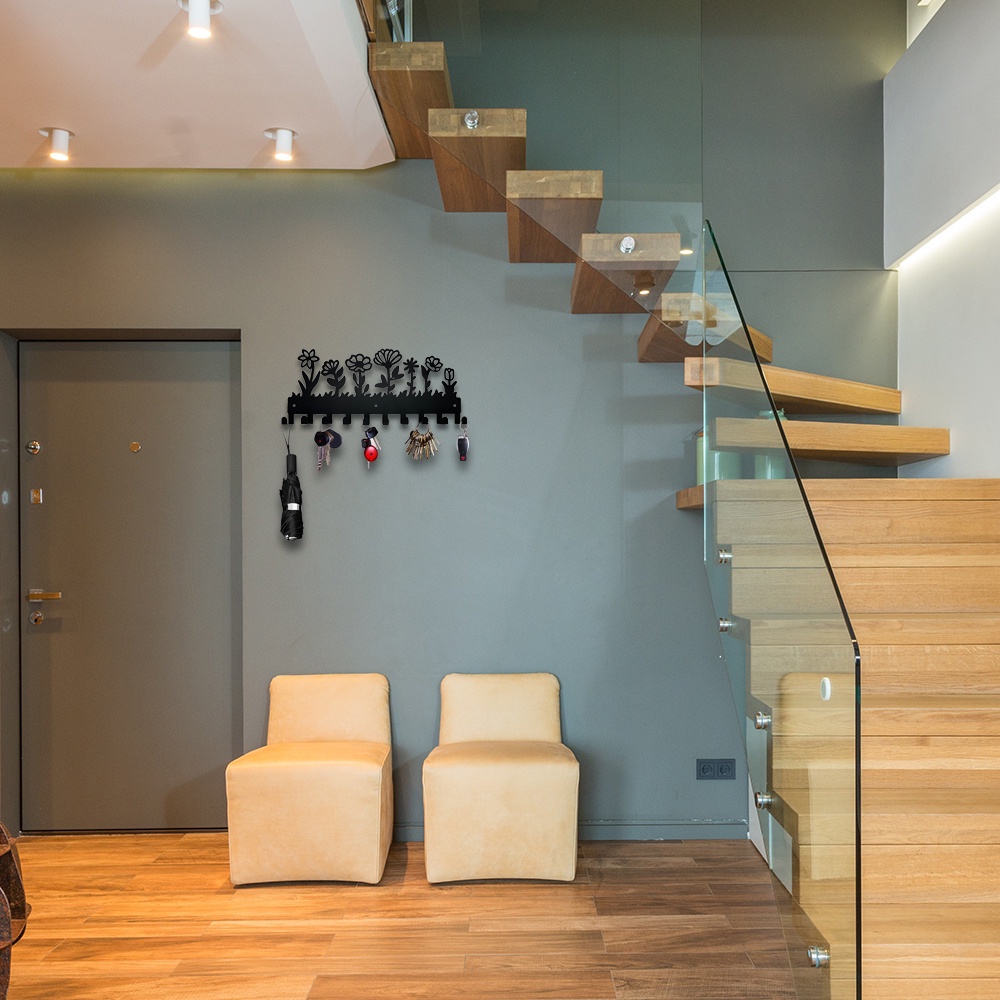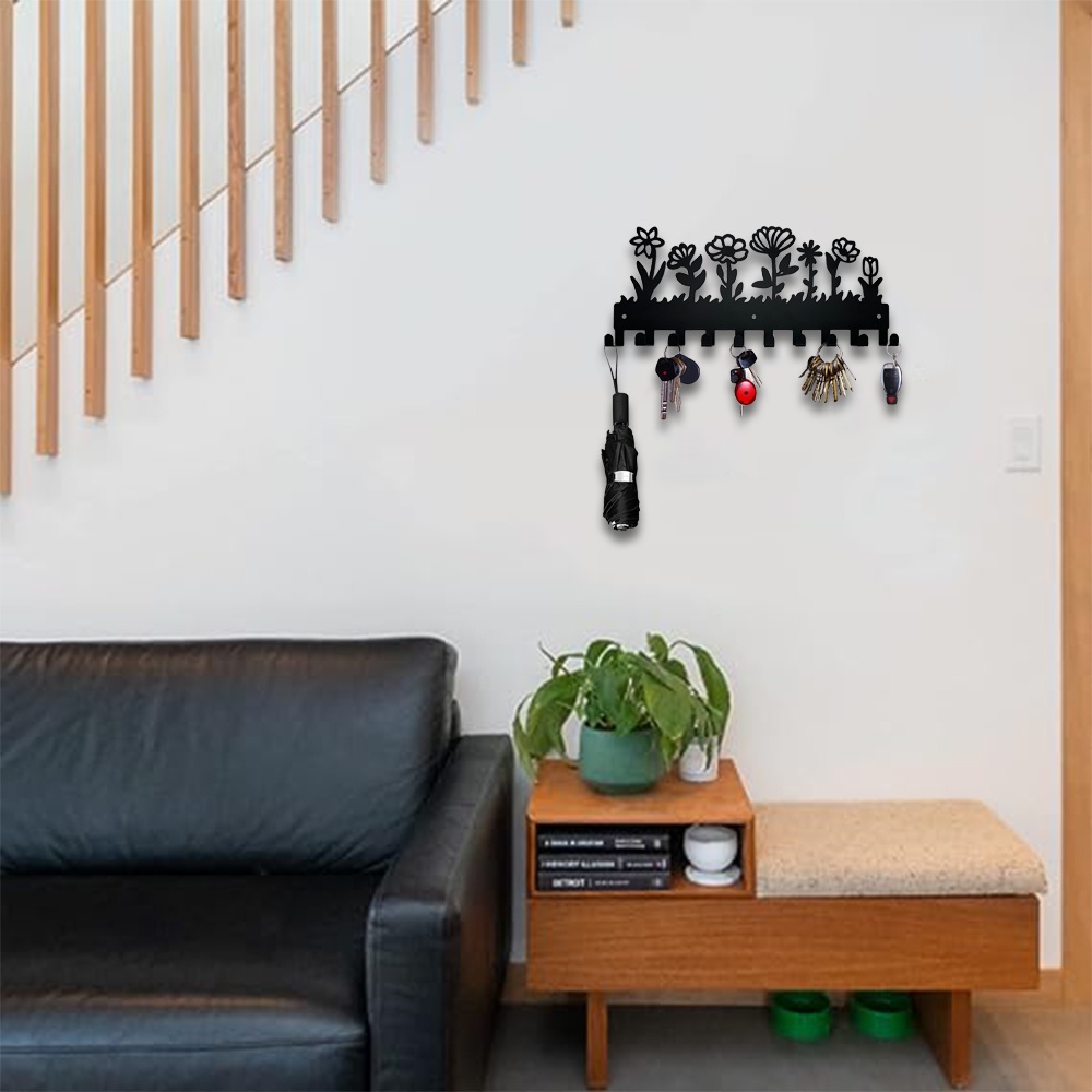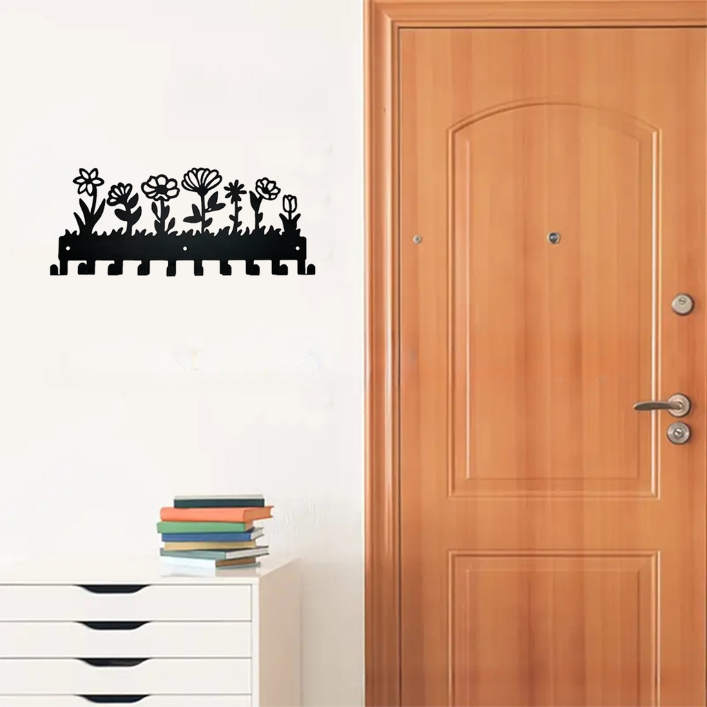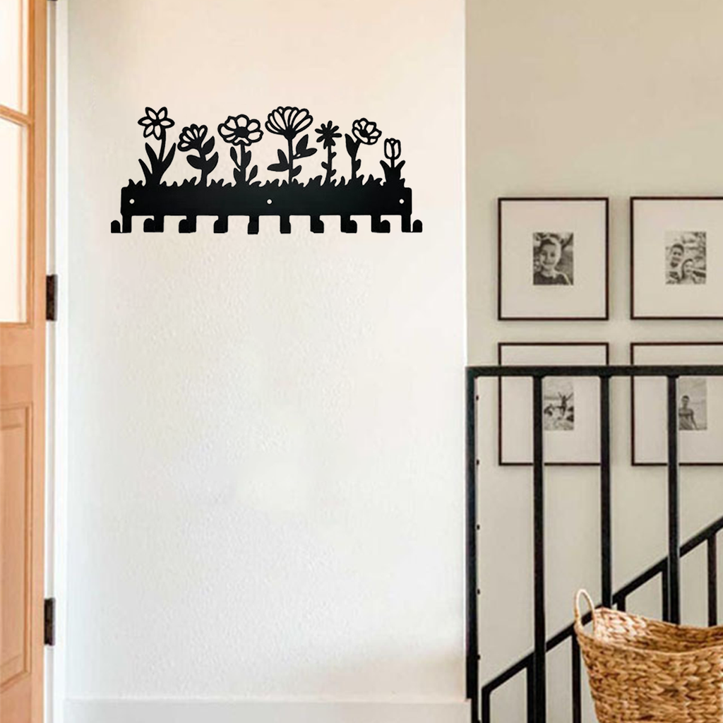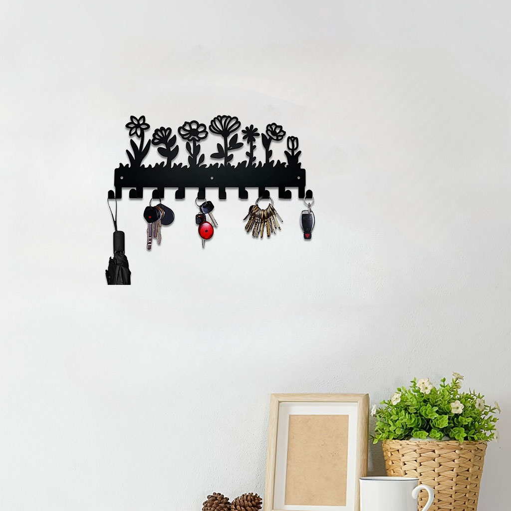 Design Floral Porta-Chaves Metálico De Parede Gancho