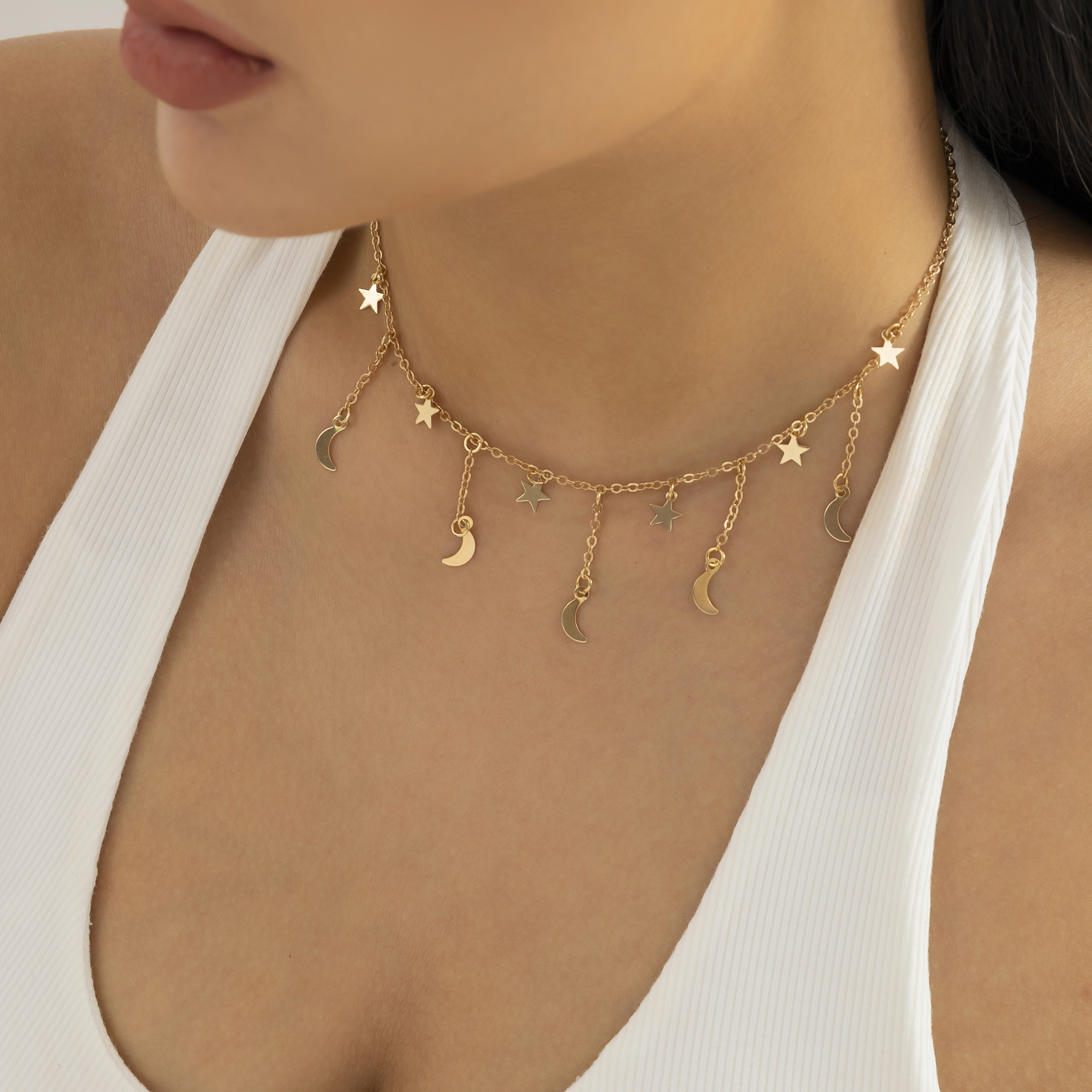 Colar de Clavícula com Corrente Tassel, Lua e Pingente de Estrelas 2024 Fashion Jewelry para Mulheres como Presente