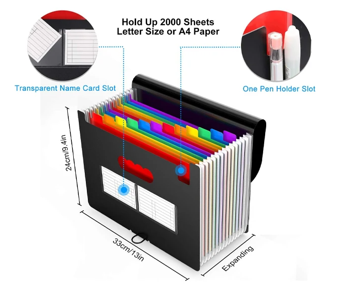 Pasta De Arquivo Expansível 12 Bolsos Organizador De Arquivamento A4 Caixa Portátil De Grande Capacidade