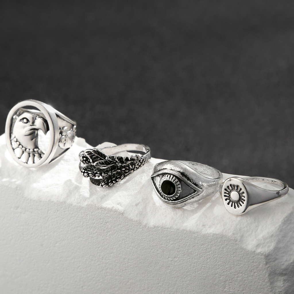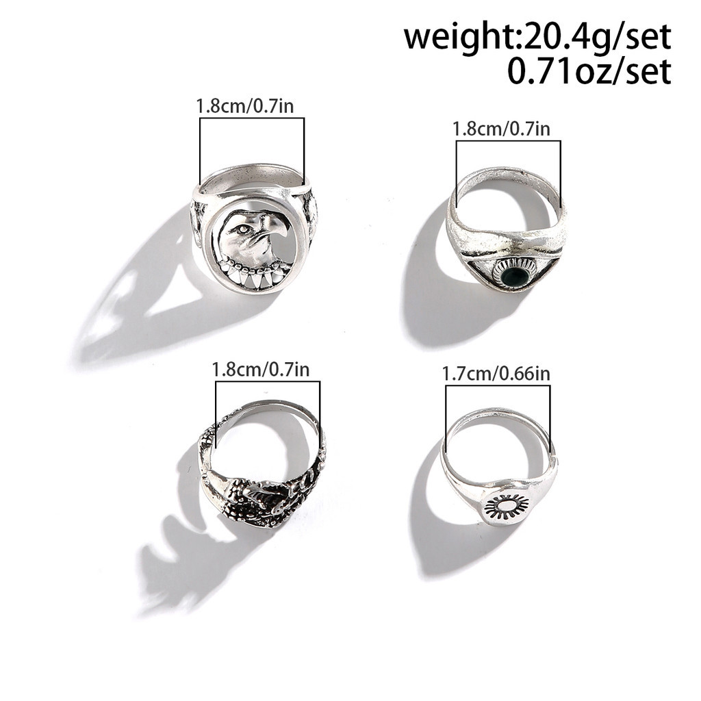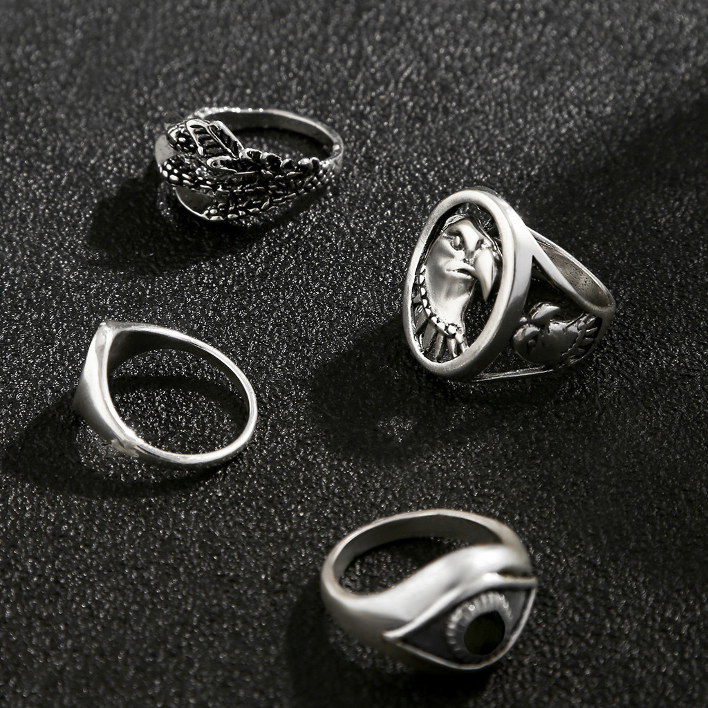 4 Pcs Vintage Viking Eagle Head Claw Rings Set Masculino Acessórios 2024