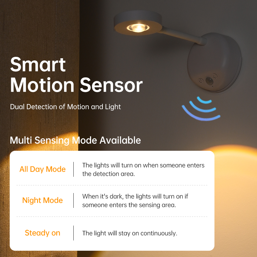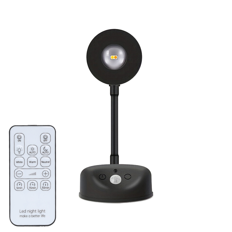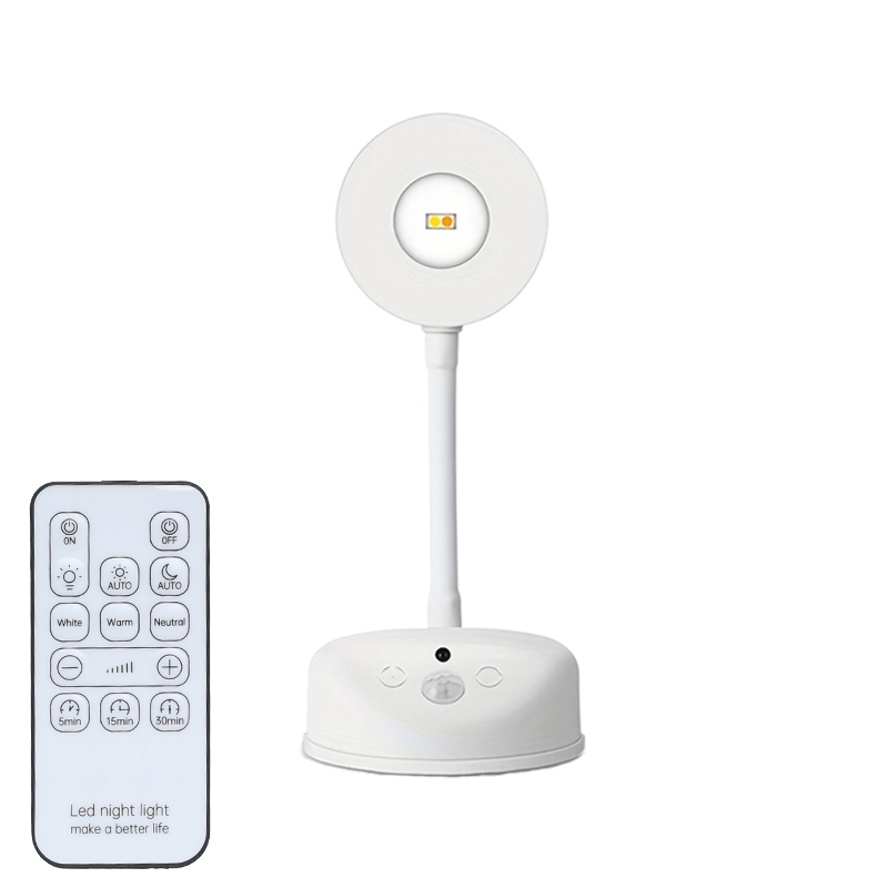 Luz Noturna Com Sensor De Movimento LED Controle Remoto 3 Cores Sem Fio USB Recarregável Branco