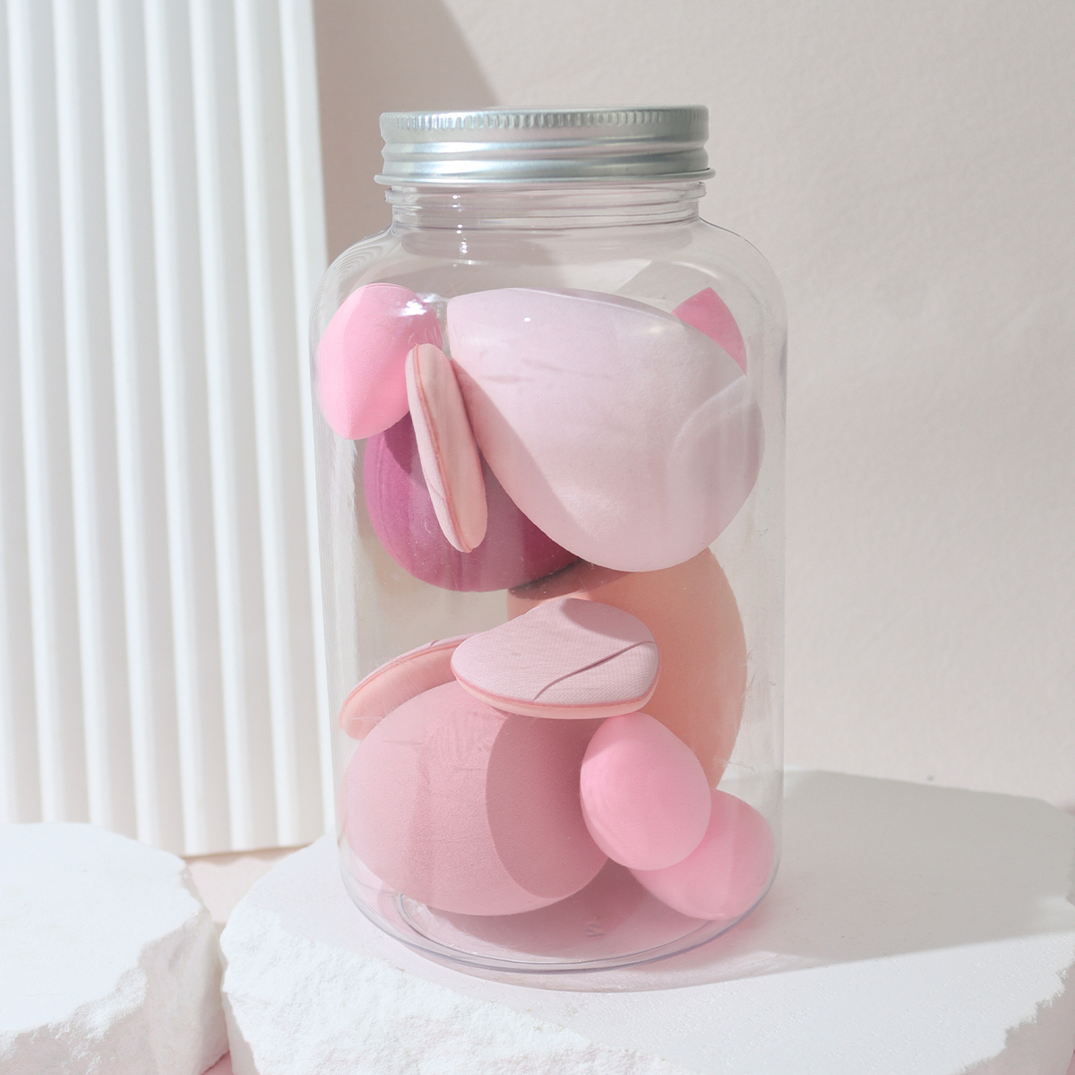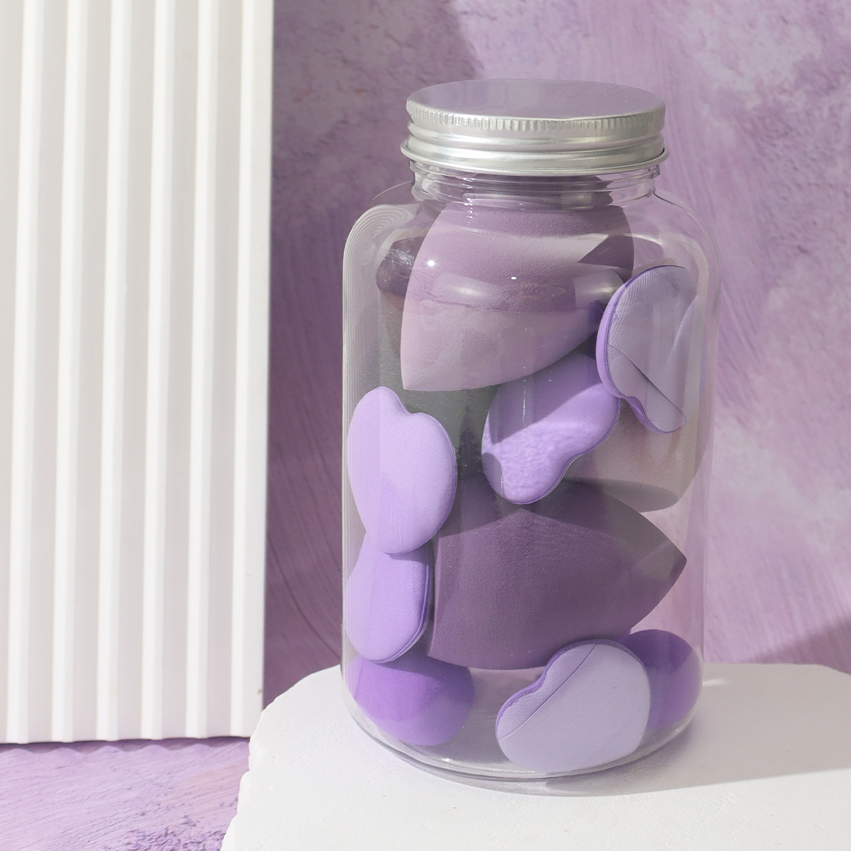 Conjunto De Esponja De Maquiagem E Sopro De Dedo Com Frasco De Armazenamento , Uso Úmido Seco De 14 Peças Para Todos Os
