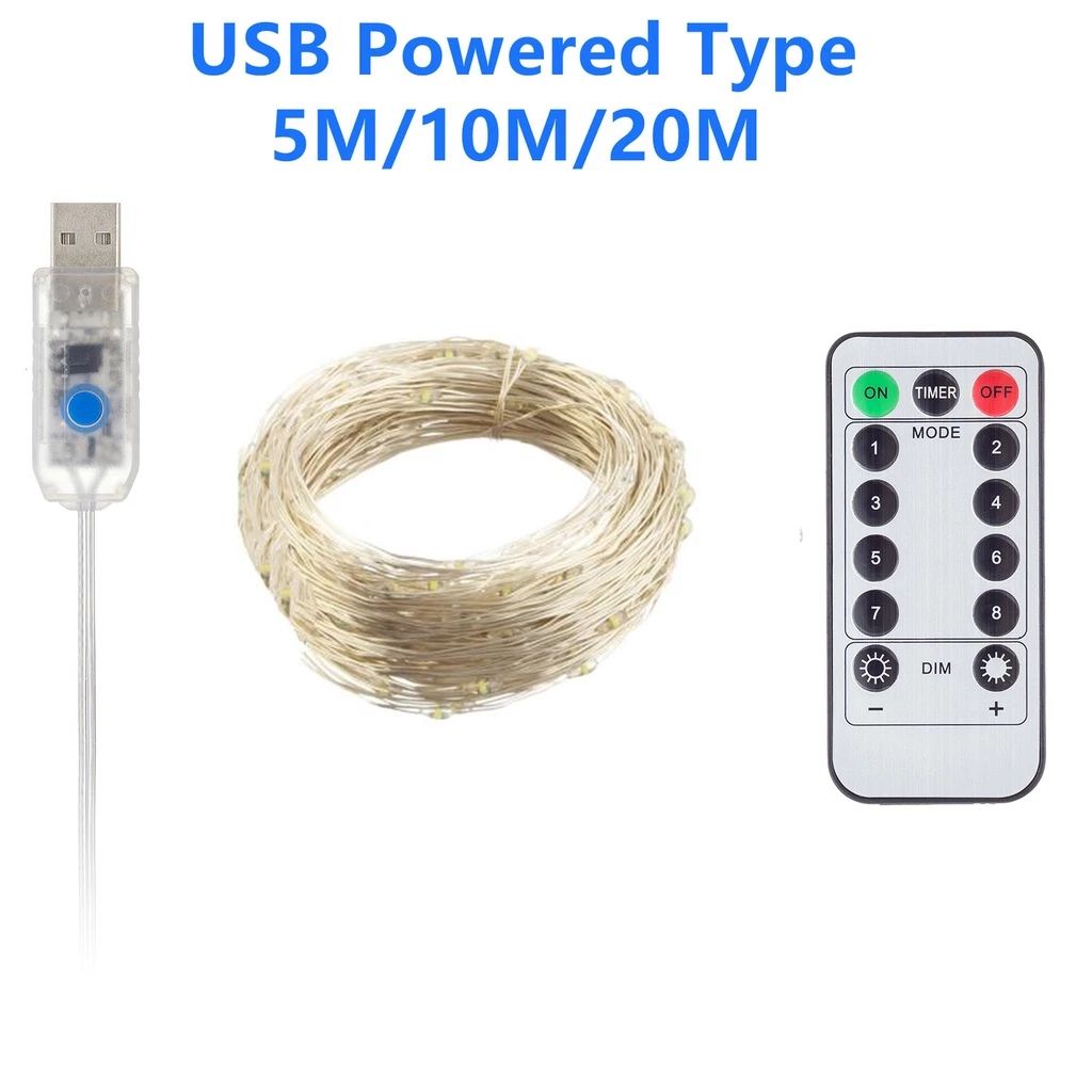 Luzes De Fadas USB Com Controle Remoto De 13 Botões , 8 Modos De flash , À Prova D'água , Fio De Prata Cobre , Corda Fes