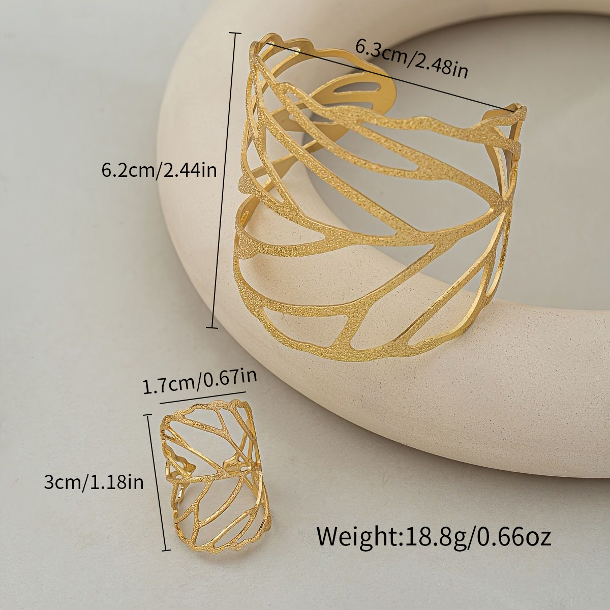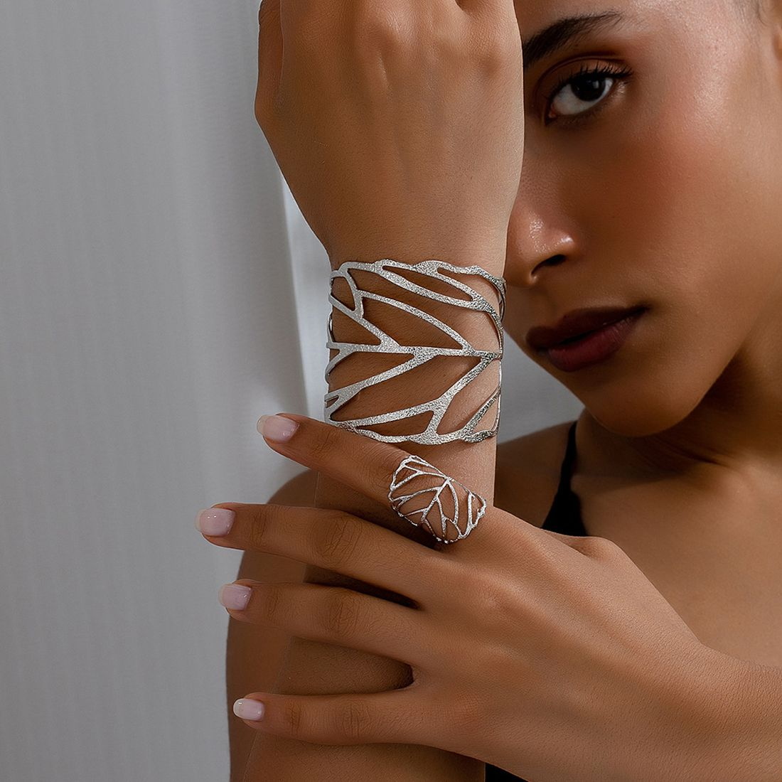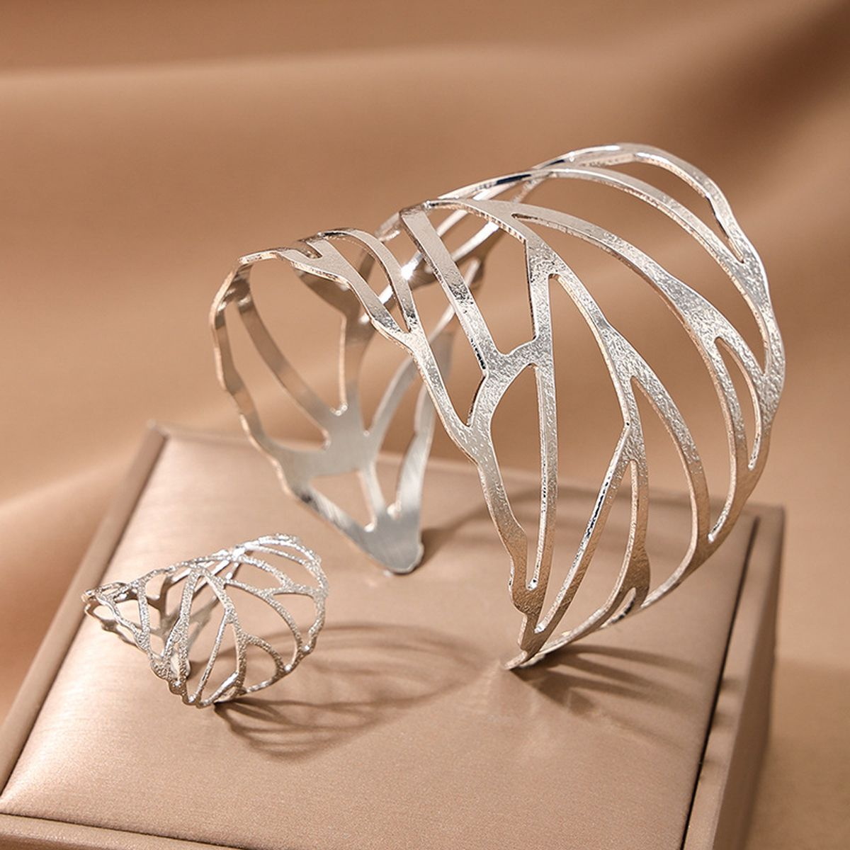 Conjunto De Anel De Pulseira De Folha Oca , Acessório De Joias Para Fotos De Desfile De Moda