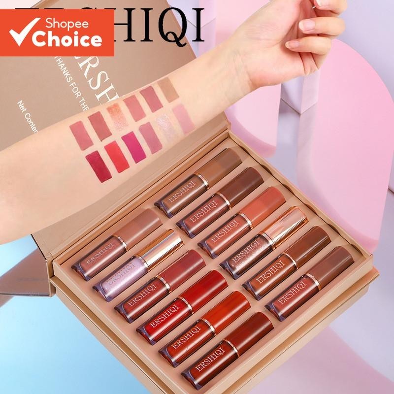 ErshiQi 12 Unidades Conjunto De Brilho Labial De Longa Duração g Fosco À Prova D'água Batom Esmalte