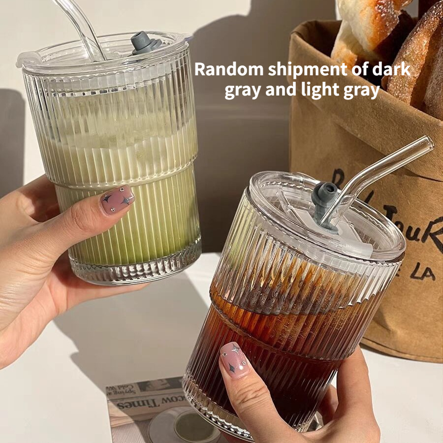 Copo De Vidro Listrado Vertical Vintage , Bebida Durável Para Café Gelado , Chá E Leite