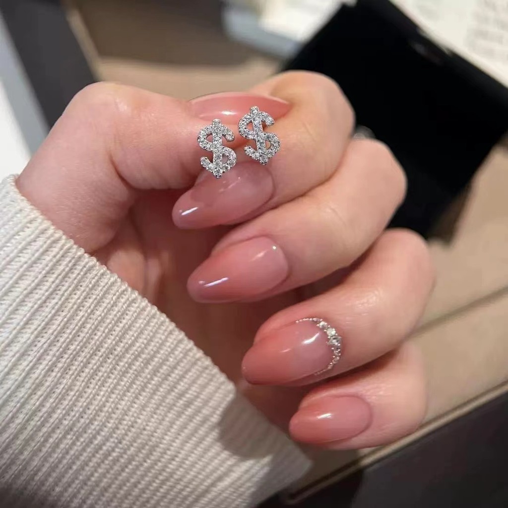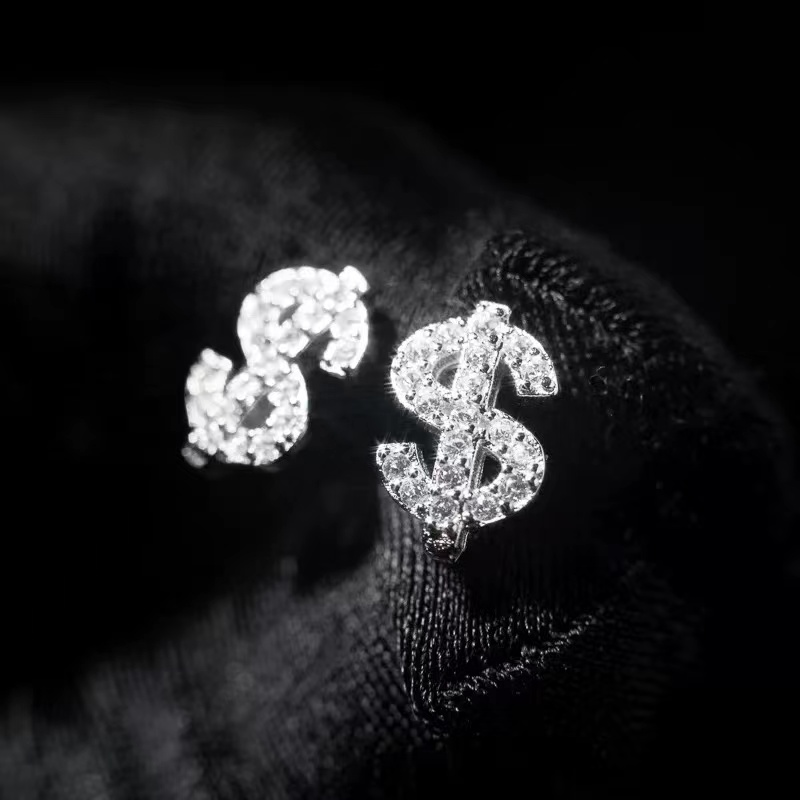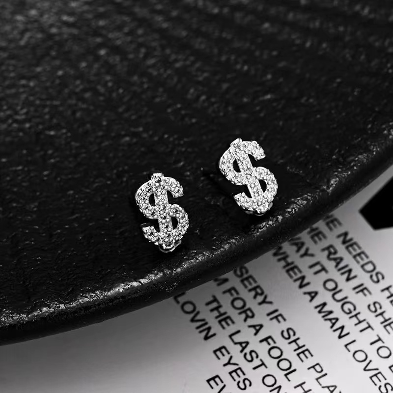 1 Par De Brincos De Estilo Americano Com Design Em Forma De Dólar De Diamante Completo Super Brilhante