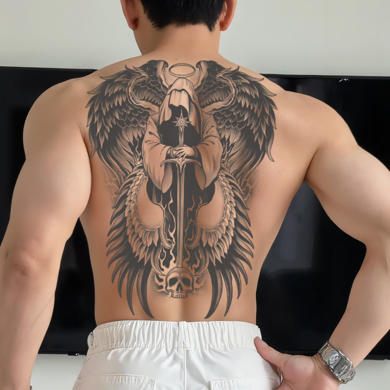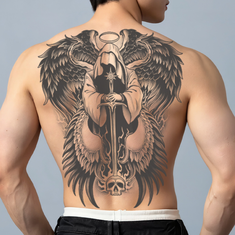 Anjo escuro costas completas tatuagem temporária adesivo impermeável durável não reflexivo masculino volta tatuagem fals