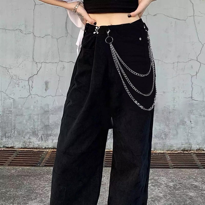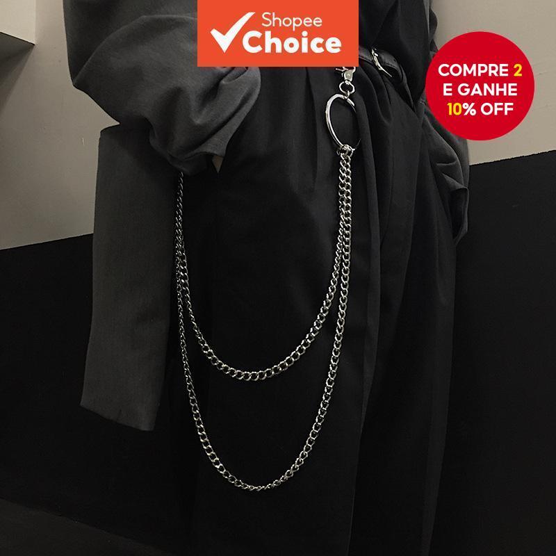 Hip Hop Dupla Camada Calças Corrente Retro Metal Geométrico Punk Jóias Acessórios Para Homens