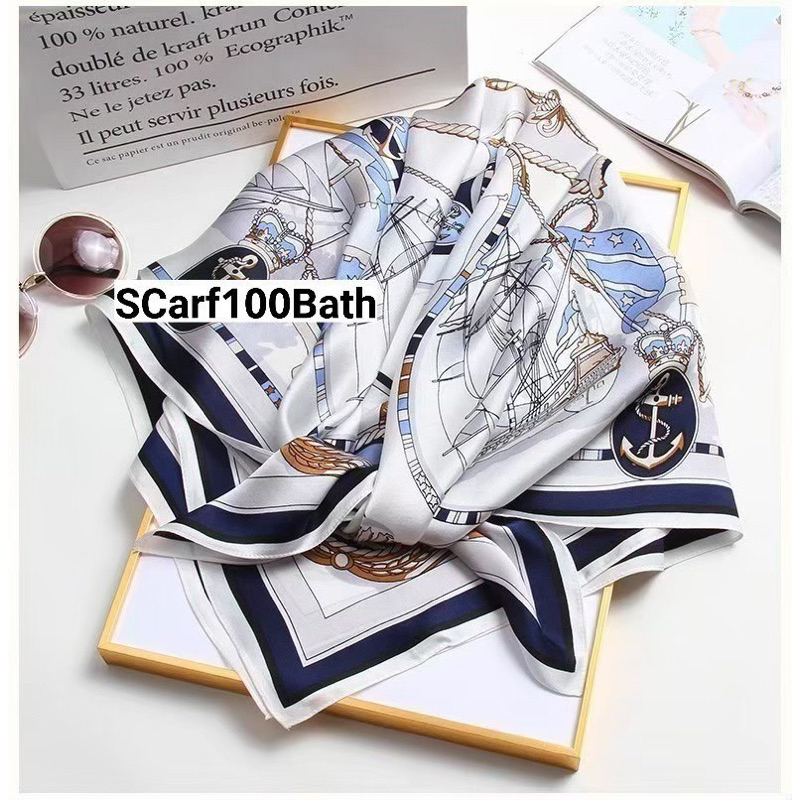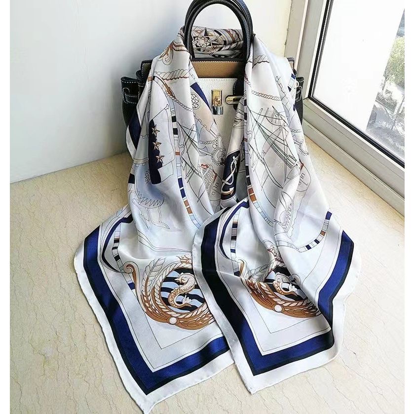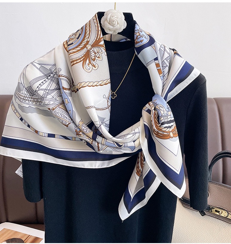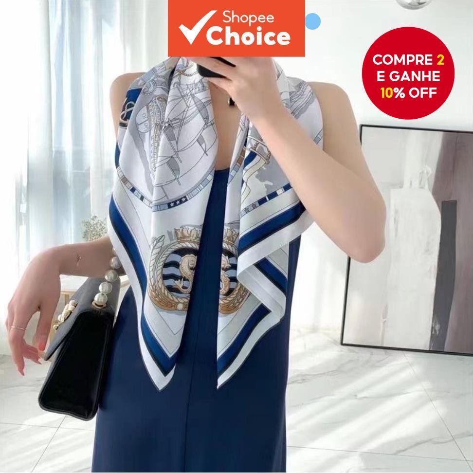 Lenço Com Estampa De Corrente Boêmia-Chique Marinho E Marfim – Faixa De Cabeça Xale Franjas De Cetim , Acessório De Moda