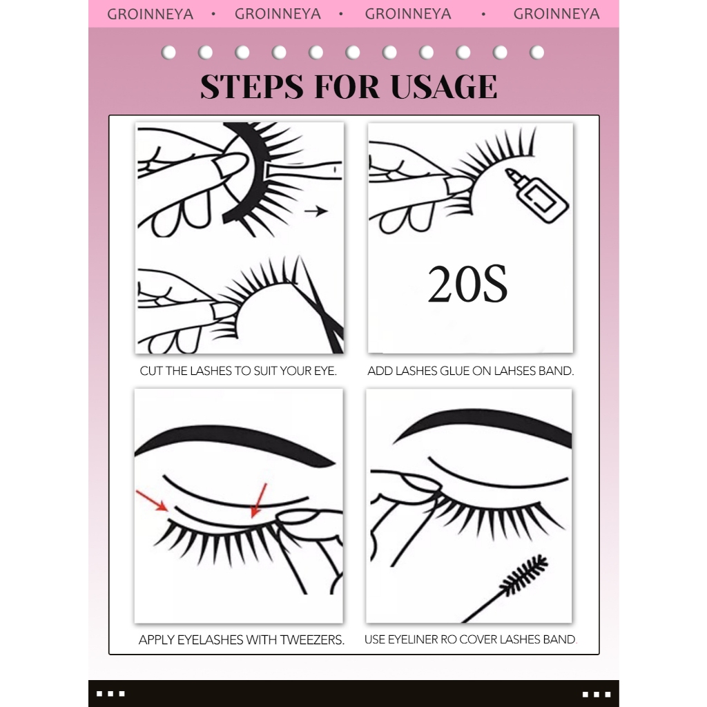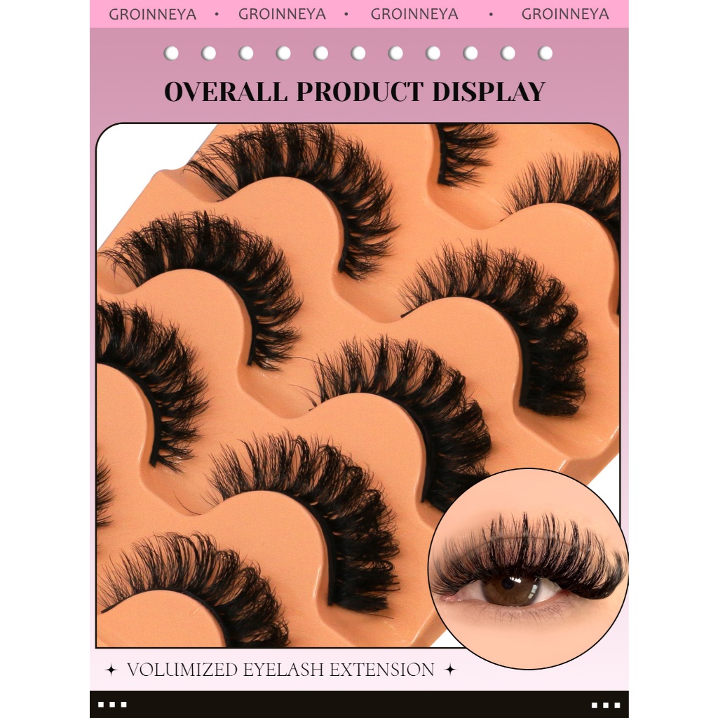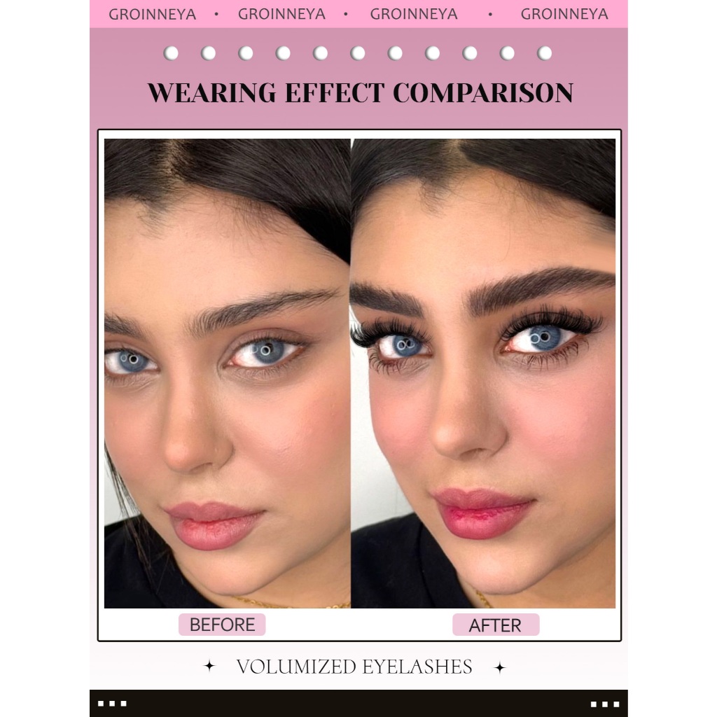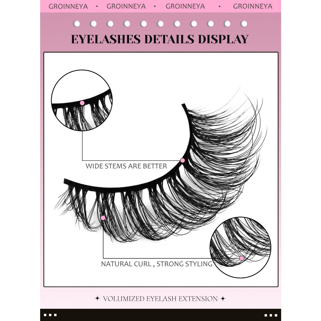 GROINNEYA Russo Tira Cílios Fofos 8D Finos Dramáticos Longos E Grossos Volume