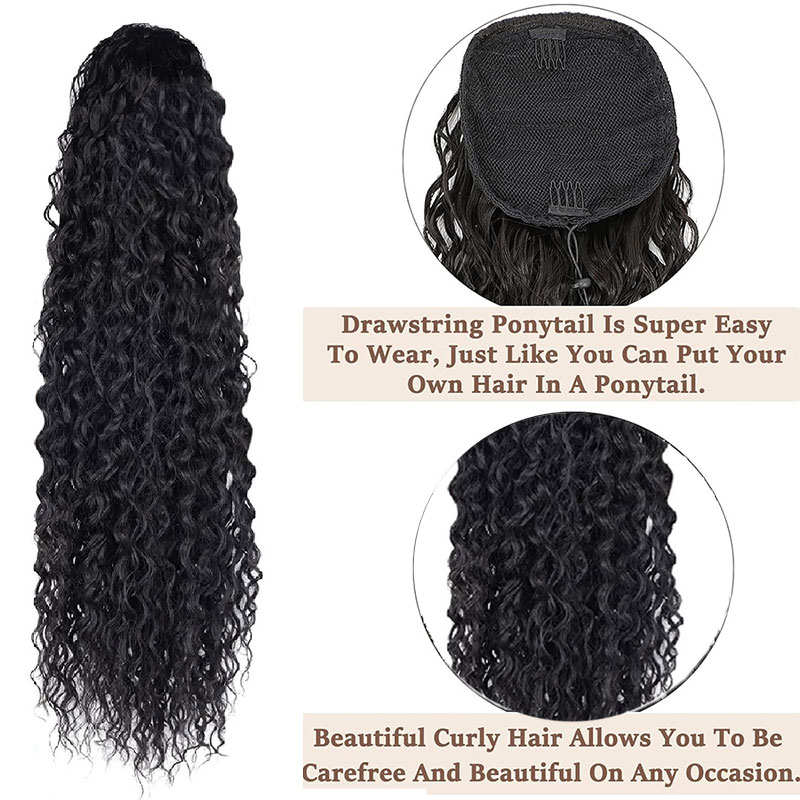 Extensão De Rabo De Cavalo Com Cordão De 70 Cm , Onda Profunda Sintética , Fofo , Encaracolado , Clipe Para Mulheres