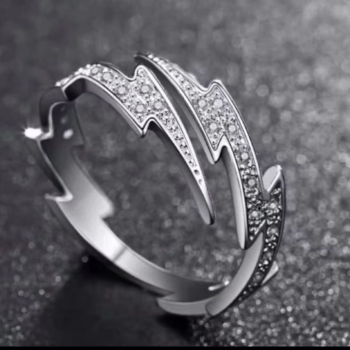 Anel de Prata Hip Hop com Design de Raio para Homens, Estilo Ajustável e Moderno