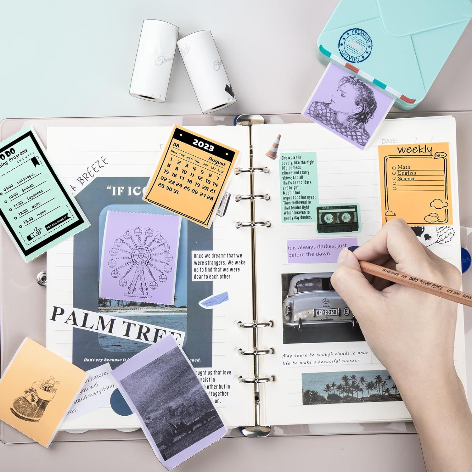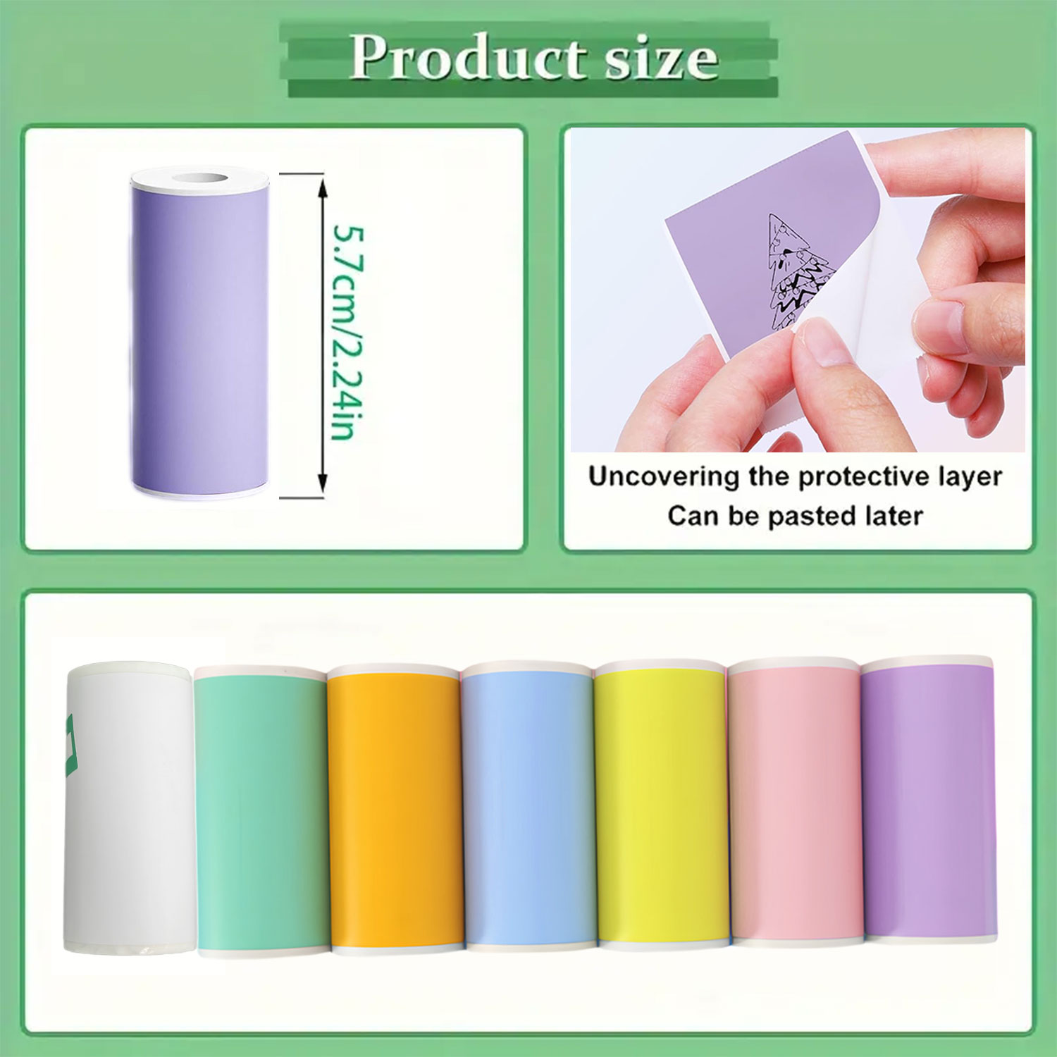 Mini Impressoras Térmicas Sete cores Papel Adesivo Universal para Fotos e Notas