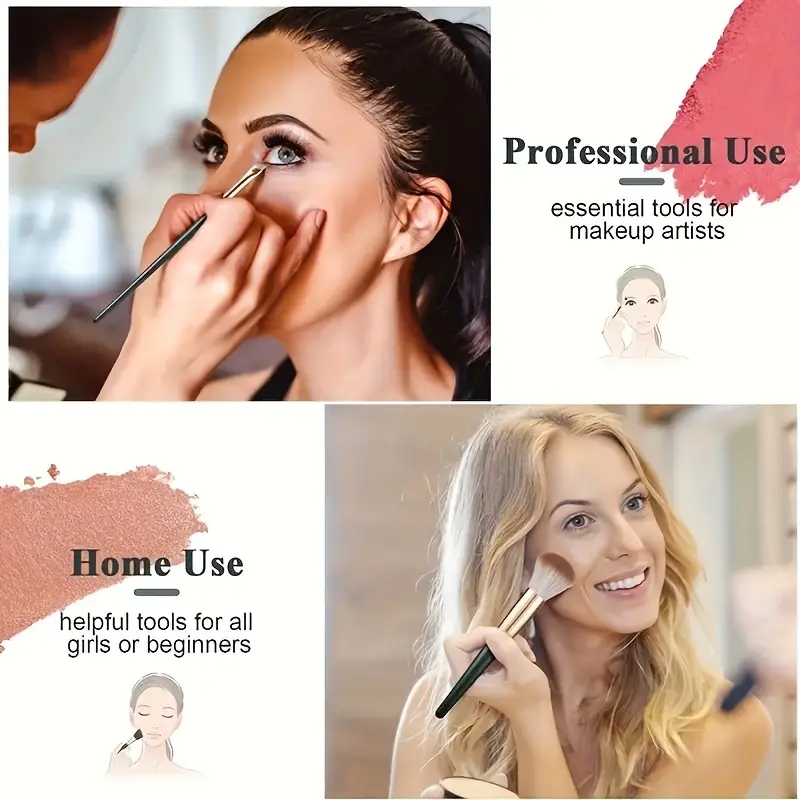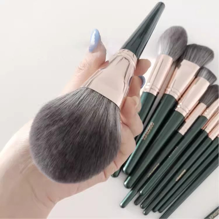 Pincel De Maquiagem Verde 14 Unidades/Conjunto , Cerdas Macias Profissionais , Kit Completo Para Rosto E Olhos
