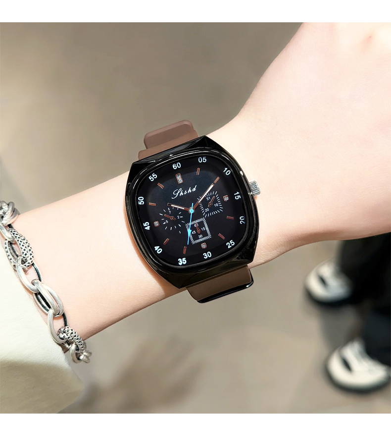 Relógio Vintage Coreano Elegante , Quartzo Dourado Com Pulseira De Silicone , Conjunto Perfeito Para Presente Feminino