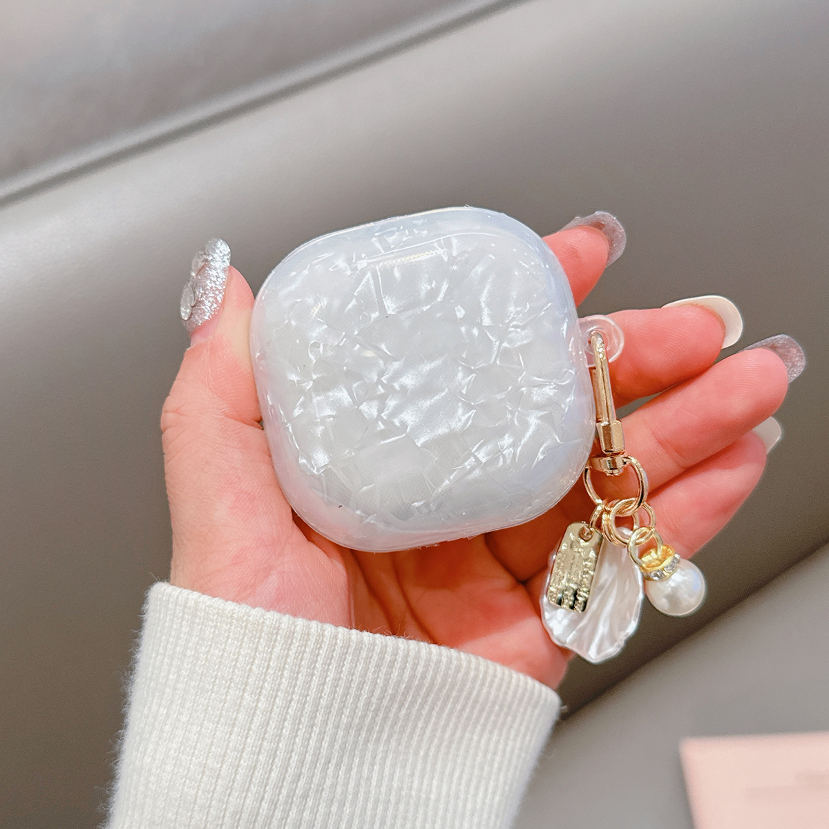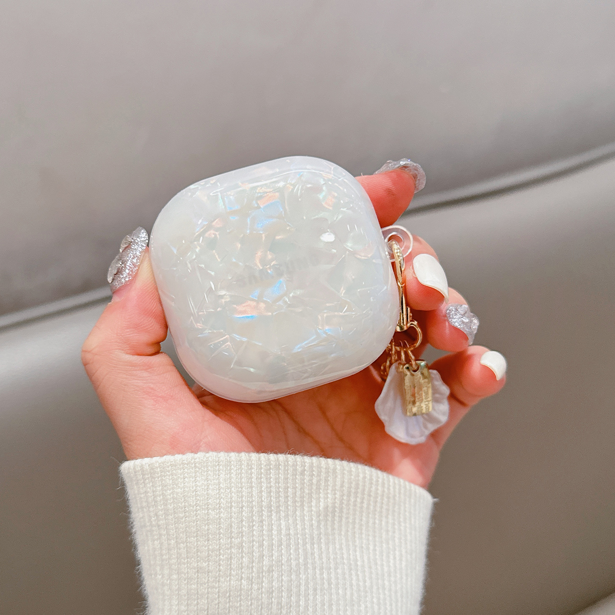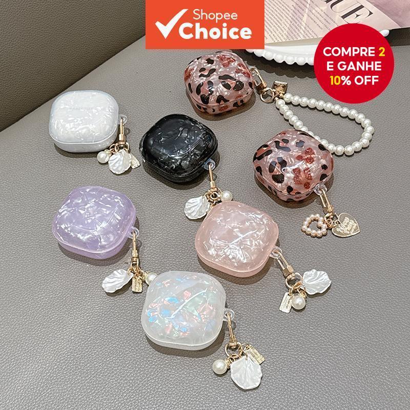 Luxo Pérola-Shell Powerbank Bolsa Titular Para Galaxy Buds FE/Pro/Live/2 , Capa Macia De Fones De Ouvido Bluetooth Com C