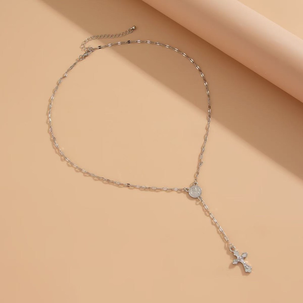 Cruz Virgem Maria Colar Elegante Pingente Longo Presente Para Mulheres Acessório De Moda