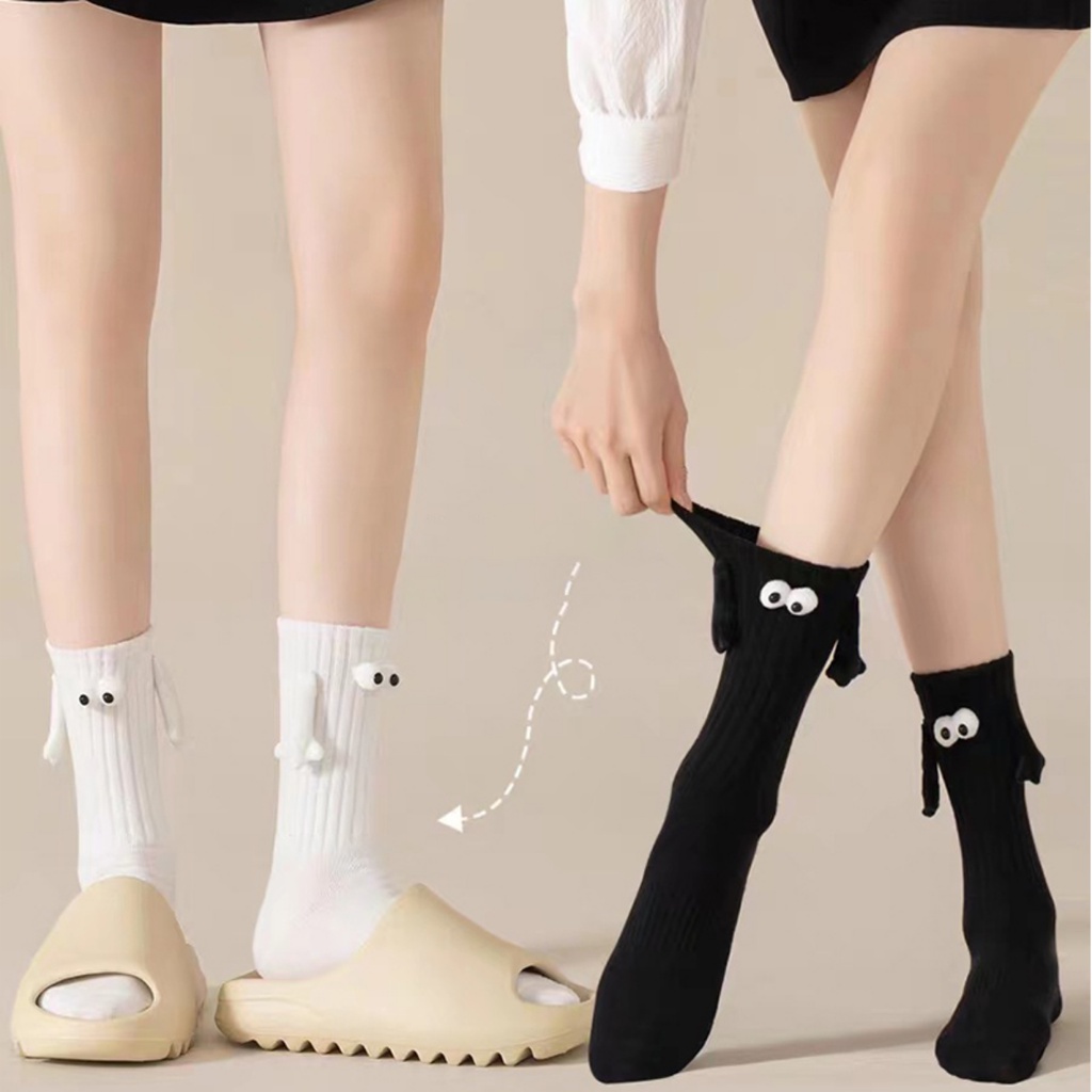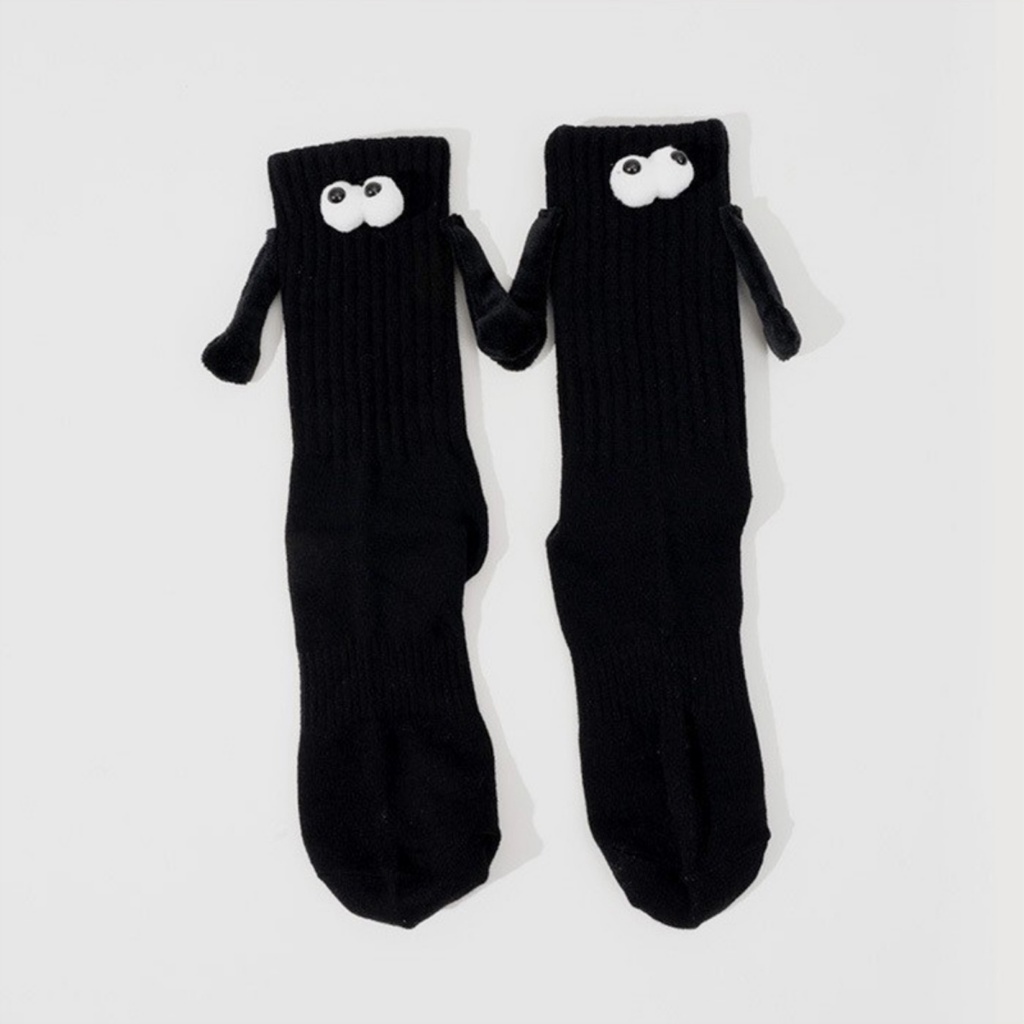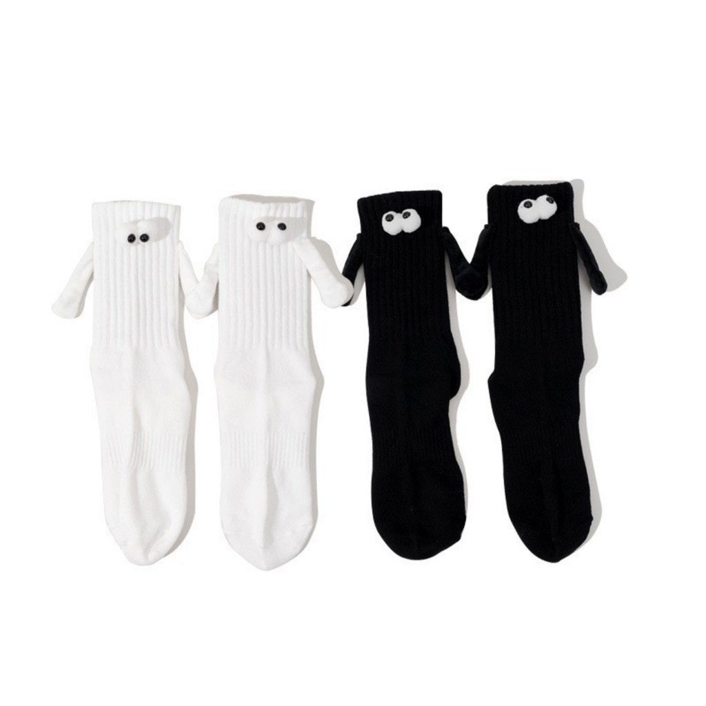 Zxyouping Meias De Mãos Dadas Casal Esportivas De Algodão Meia Panturrilha Magnética Tridimensional Fofa Preta E Branca