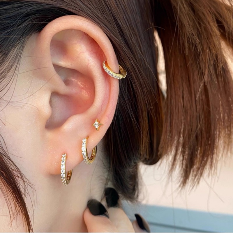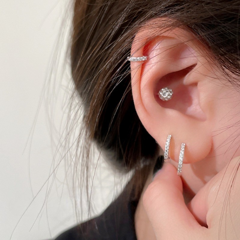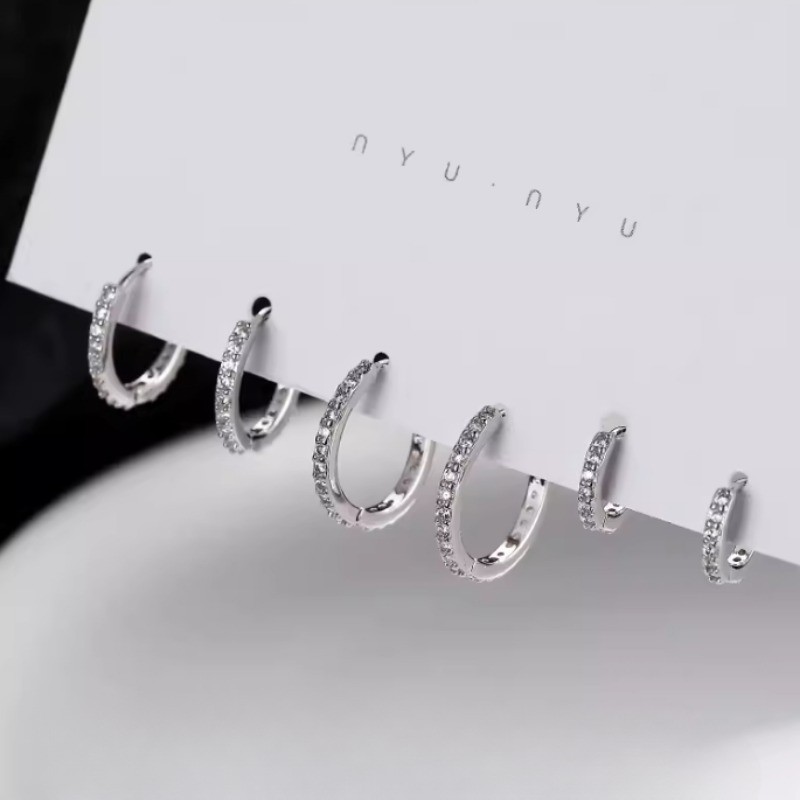 Minimalismo Prata Brilhante Cristal Perfurado Brincos De Argola Para Mulheres Meninas Elegante Orelha Círculo Jóias Aces