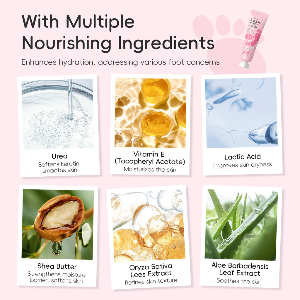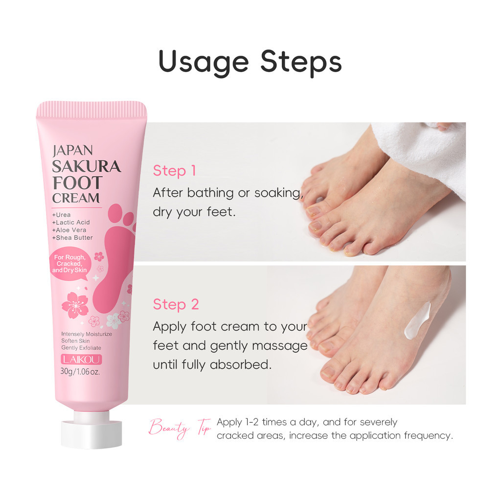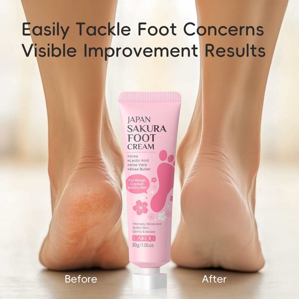 Creme para os Pés Sakura LAIKOU para Pés e Calcanhares Secos, Rugosos e Rachados, Hidratação Profunda e Suavização, 30g