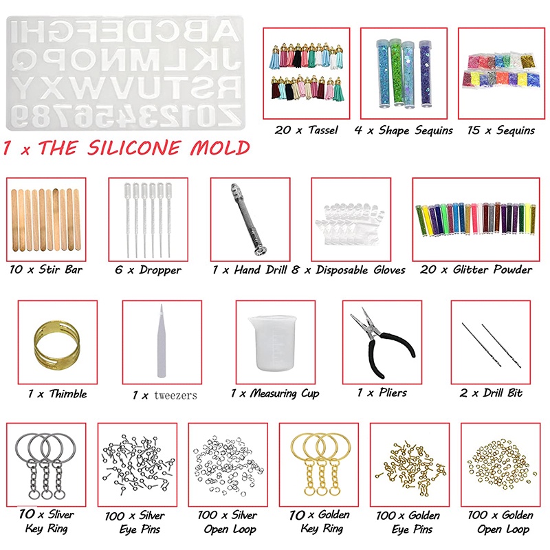 Kit De Moldes De Silicone Com Alfabeto E Número 510 Peças-DIY De Resina Epóxi Para Fabricação De Joias Fundição De Chave