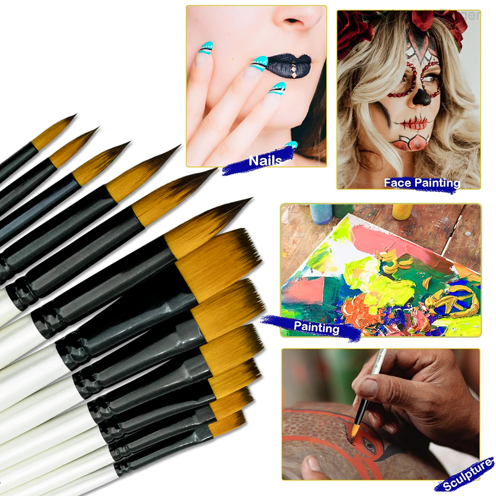 Conjunto de Pincéis Lonely Finger com Ponta Fina e Plana, 12 Peças para Pintura Acrílica, Óleo, Aquarela e Guache,