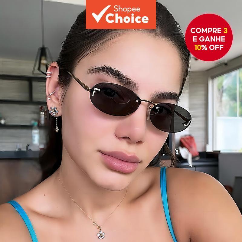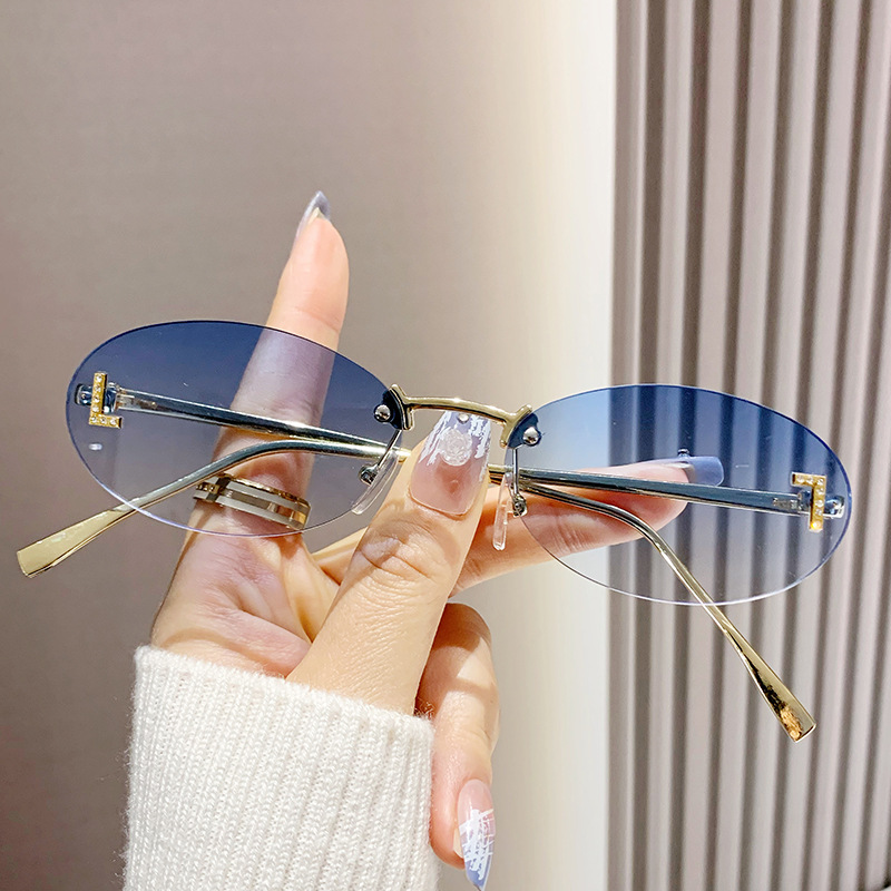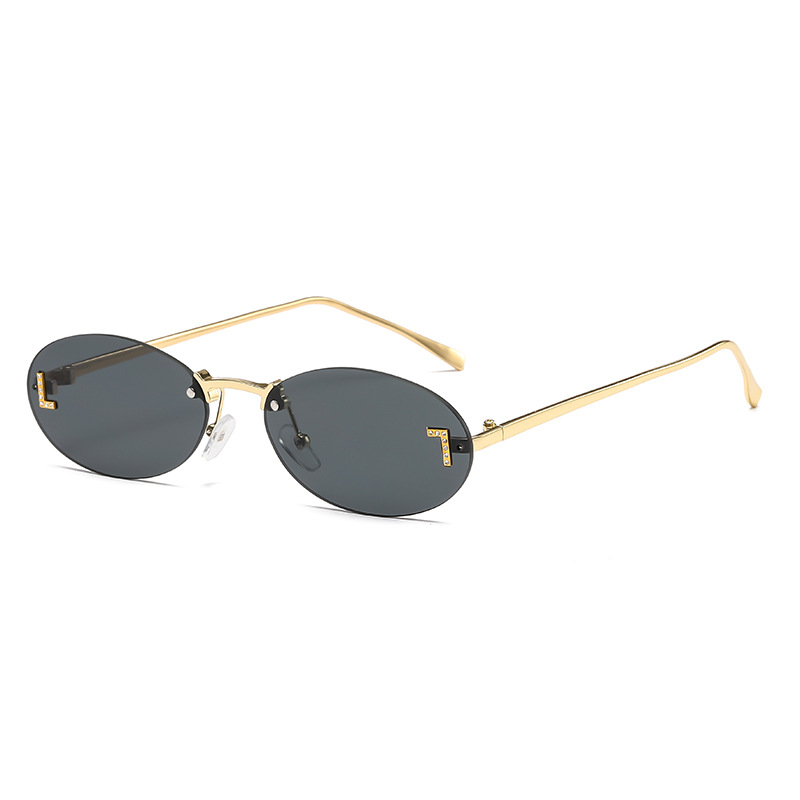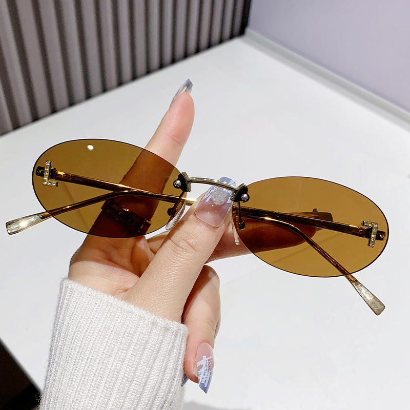 Óculos de sol sem armação, óculos de sol redondos de estilo retrô com armação pequena, óculos ovais de metal para homens