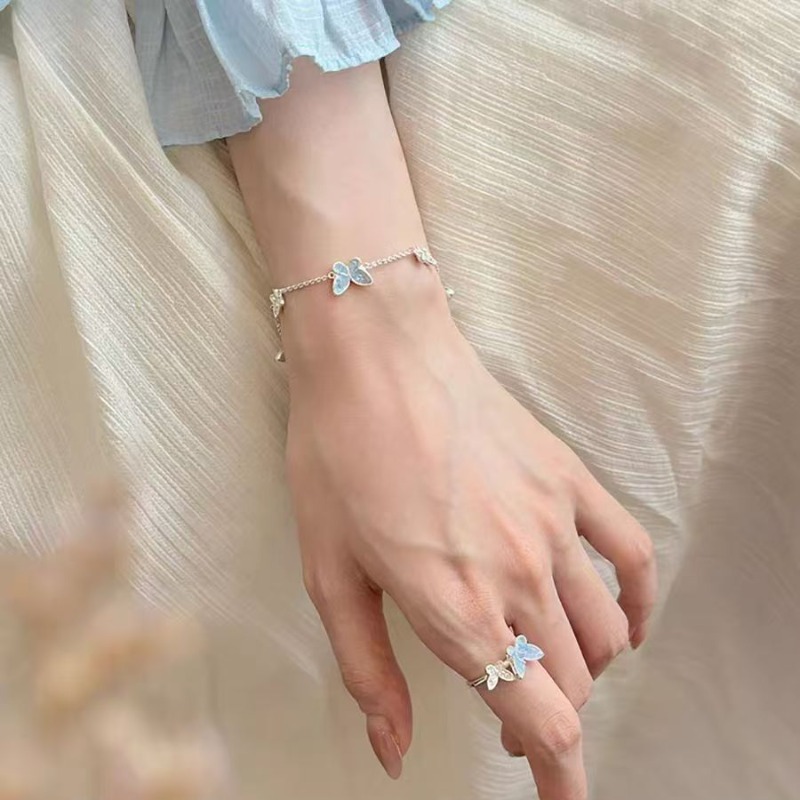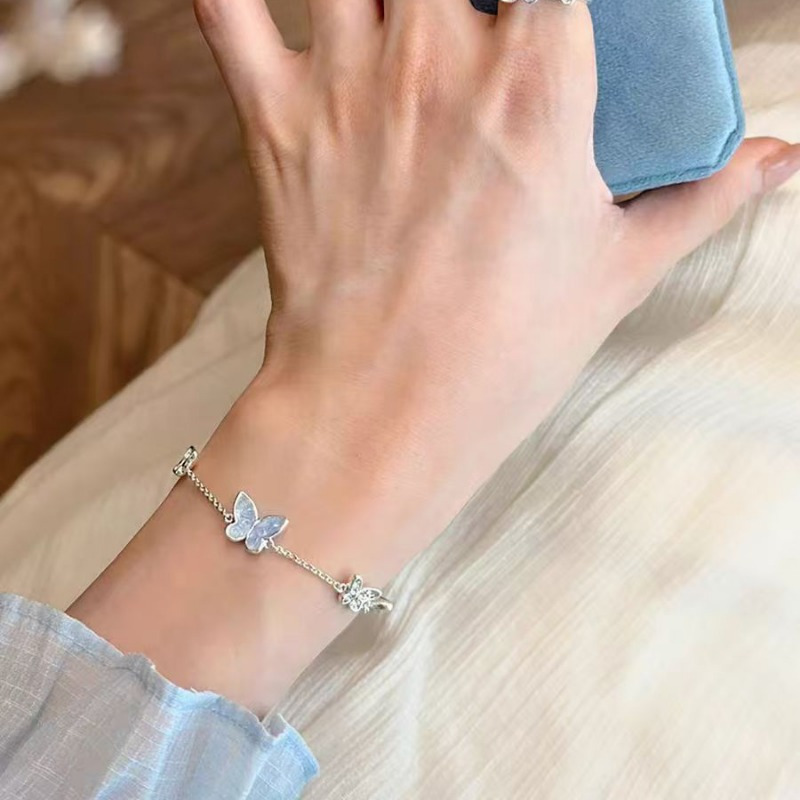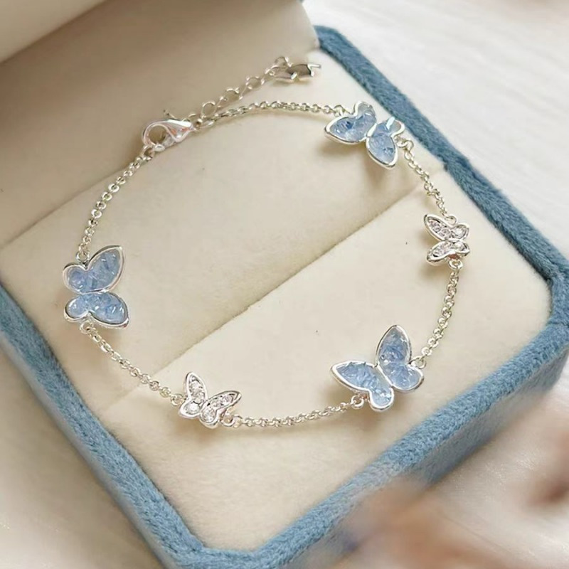 Novo Bracelete Elegante de Borboleta Azul para Mulheres em Tom Dourado, Joia de Charme, Presente.