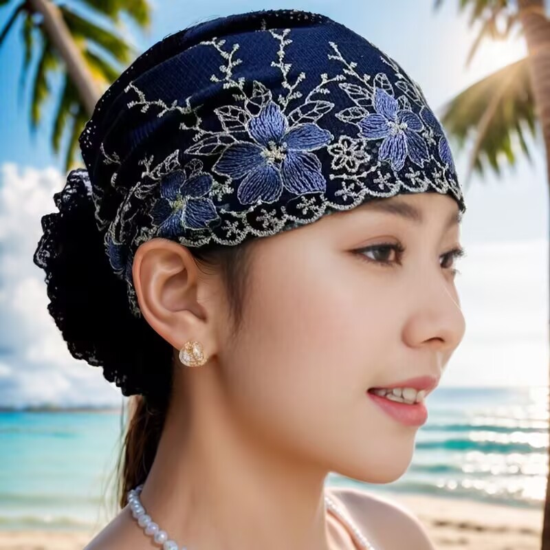 Mulheres Mãe Floral Renda Respirável Oração Lenço Capela Véu Boné