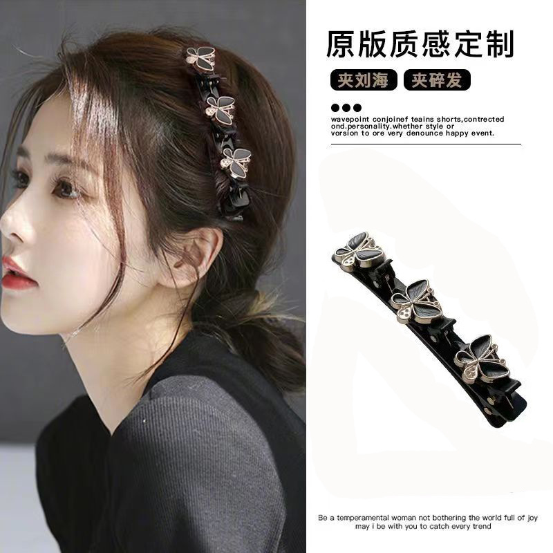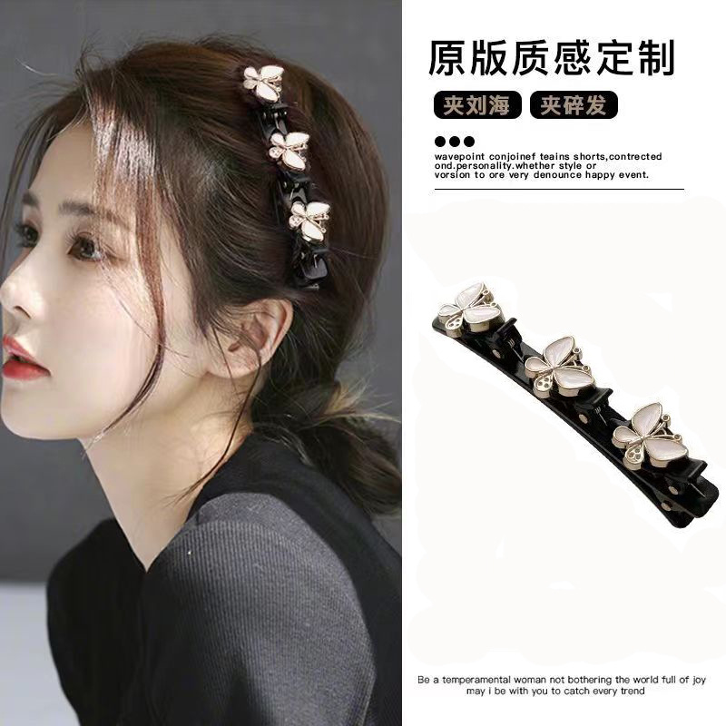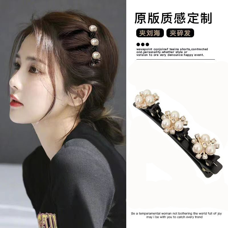 Novo grampo de cabelo de duas camadas com design elegante, ideal para organizar fios soltos e franja, com detalhes em