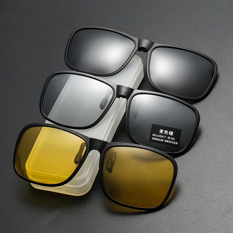 Óculos de sol polarizados clip-on TR90 UV400 anti-reflexo para dirigir à noite e miopia.