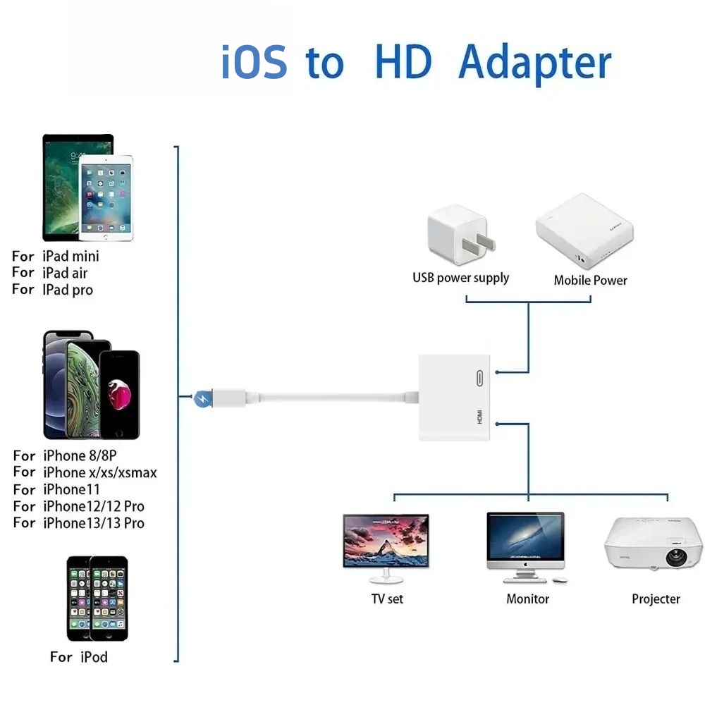 Adaptador Digital AV 1080P de IOS para HDMI para iPhone iPad TV Projetor