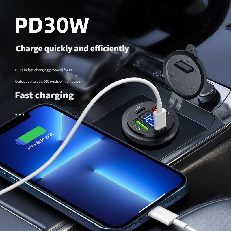 Estilo de Vida - Produto Local - 1 Conjunto Carregador de Carro QC 3.0 à Prova d'Água com Duplo USB e Dupla Tomada