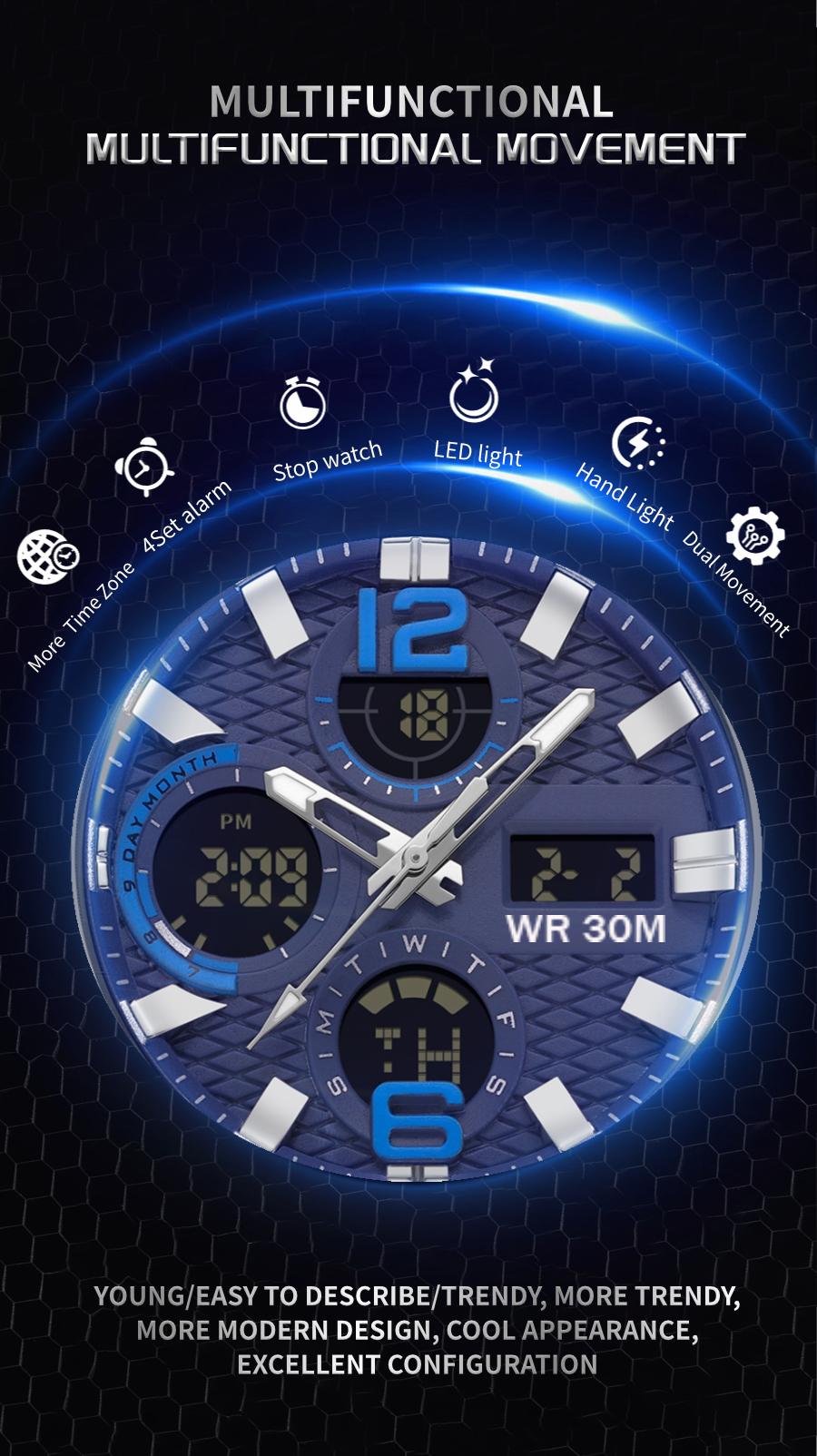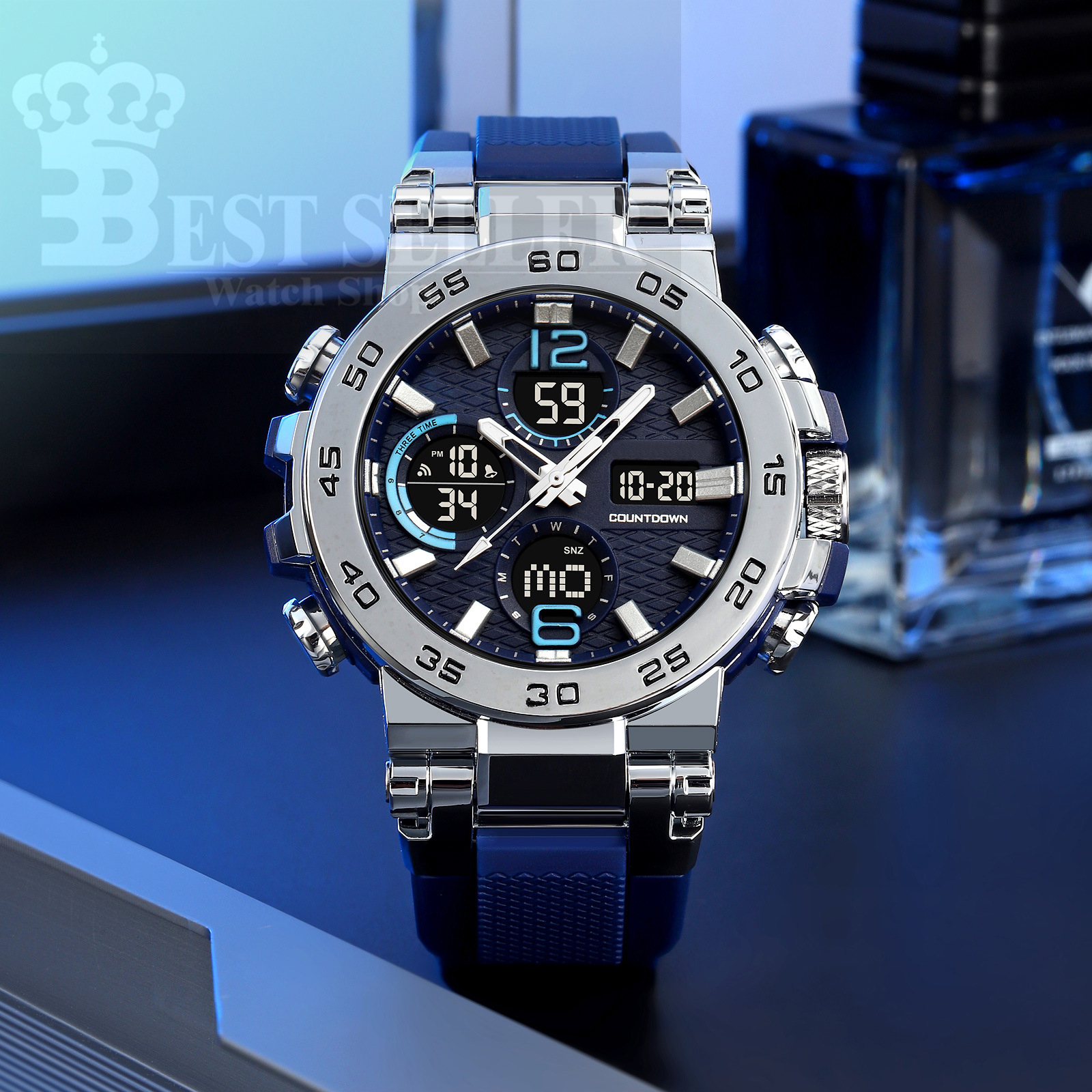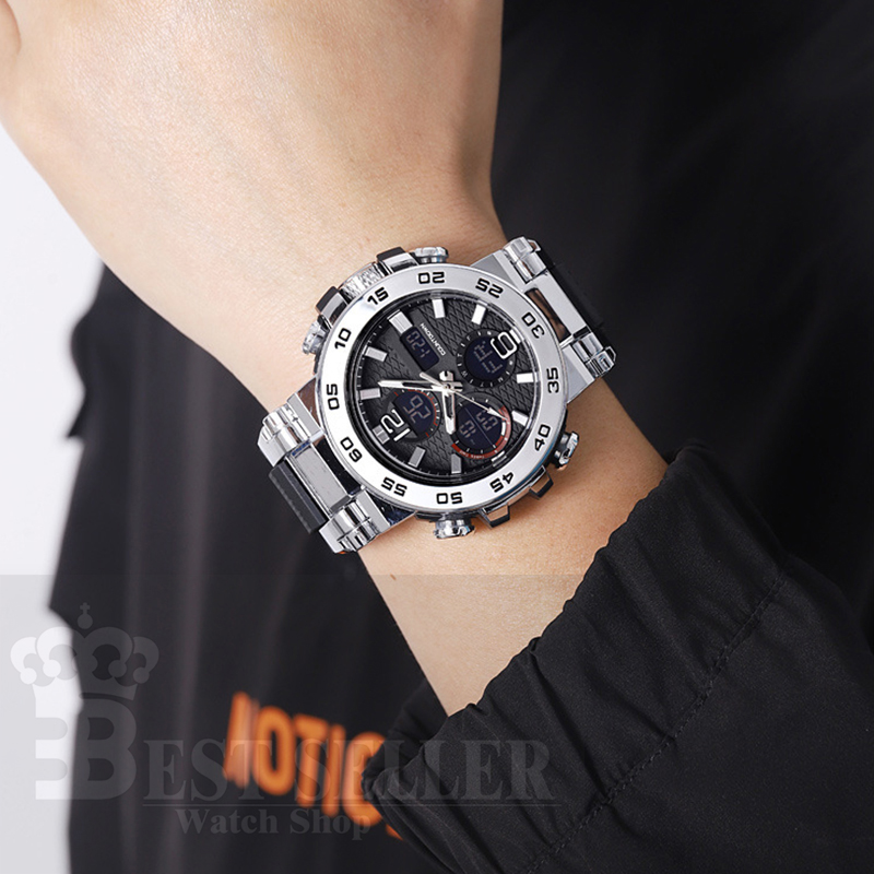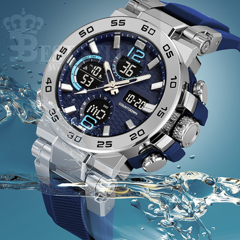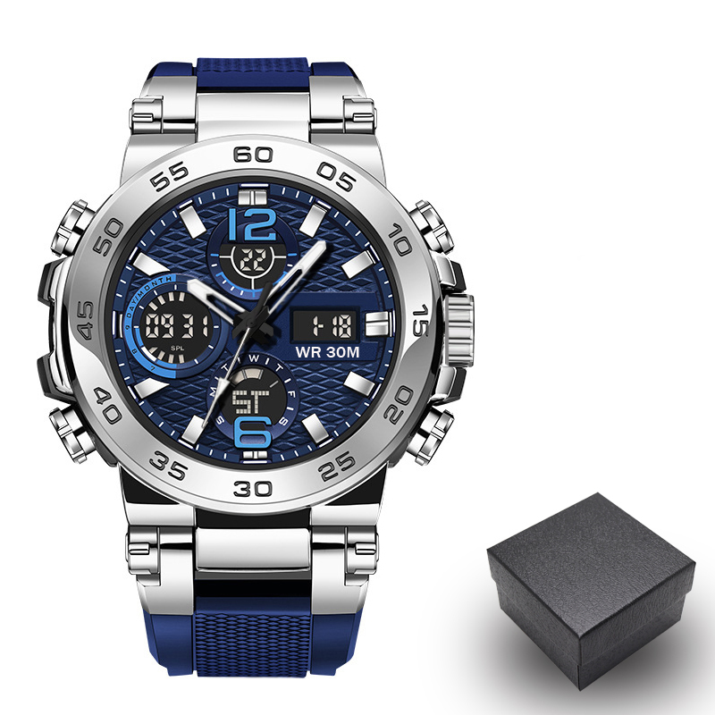 Relógio Esportivo Digital Masculino LED Pulseira De Silicone Com Display Duplo À Prova D'água