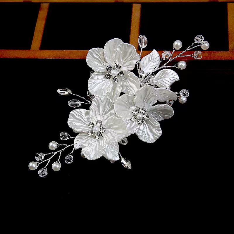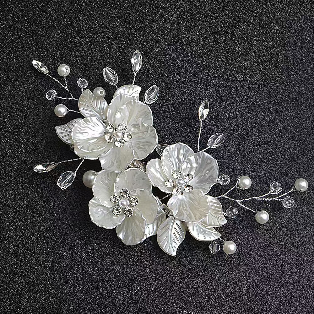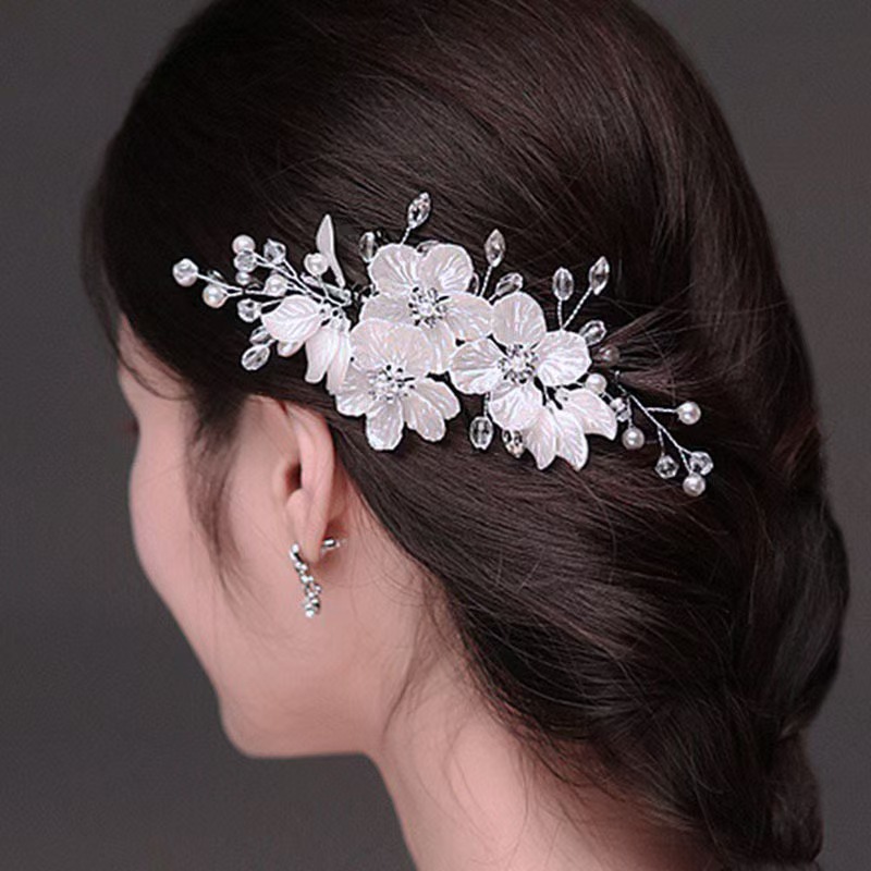 Pente De Cabelo De Noiva Coreano , Acessórios Casamento De Cristal De Pérola Floral Feito À Mão Para Mulheres