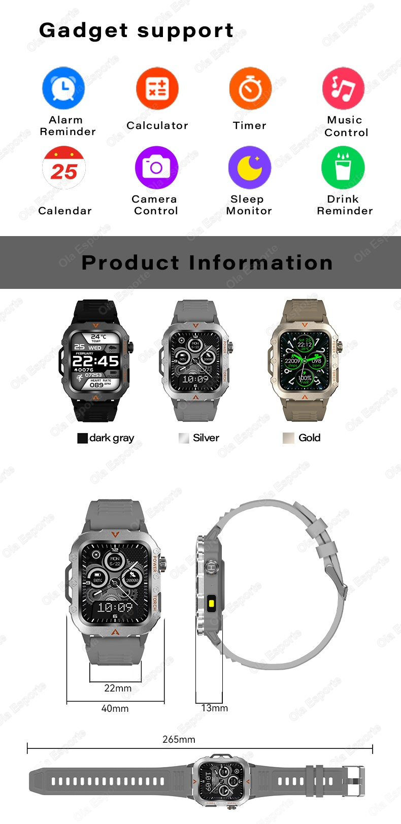 Smartwatch Relógio Inteligente Esportivo GPS Robusto Para Homens Com Monitor De Frequência Cardíaca E Sono À Prova D'águ