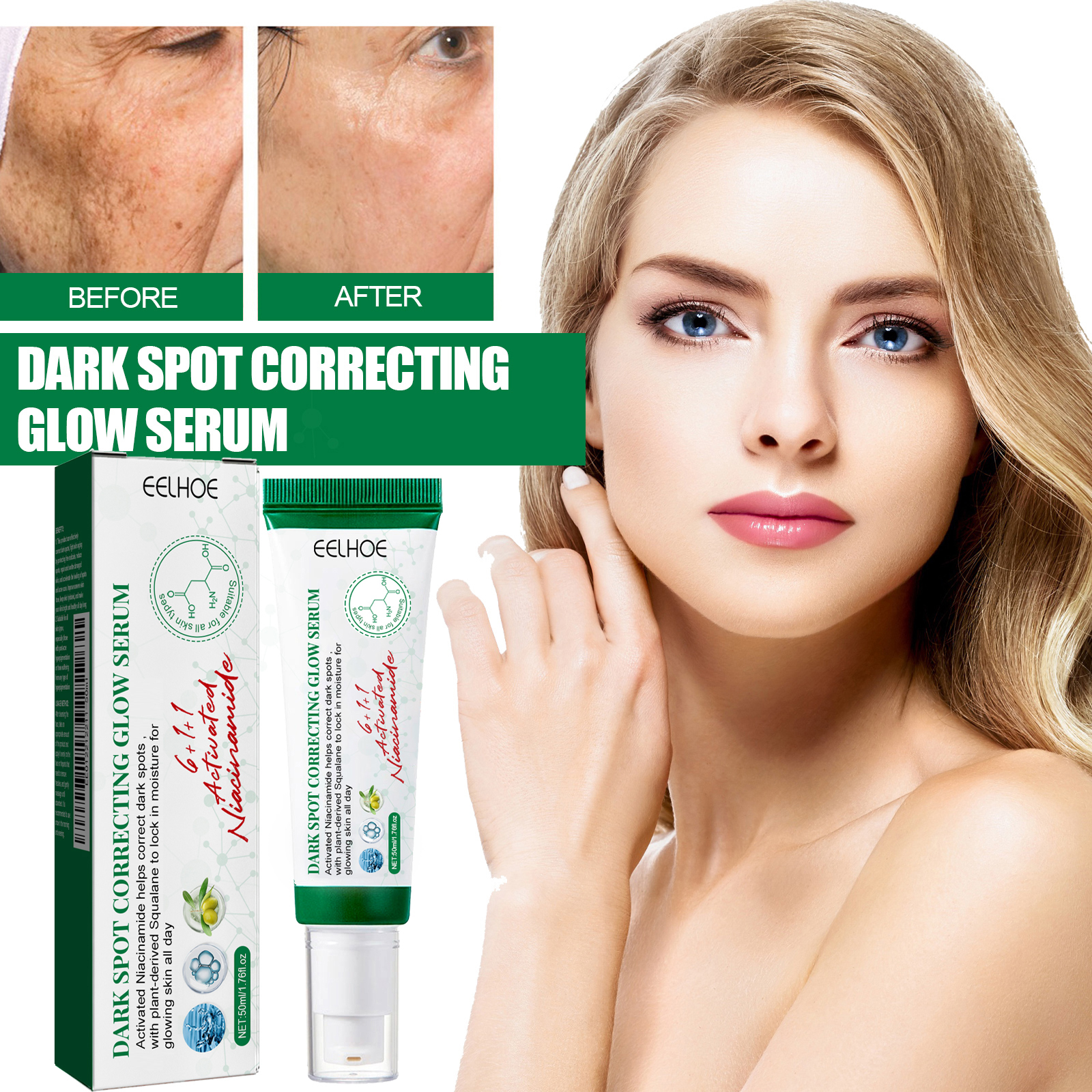 Eelhoe Dark Spot Correcting Glow Serum Para o Rosto Clareia Manchas Nutre a Pele Facial Hidrata Ilumina a Pele Essência