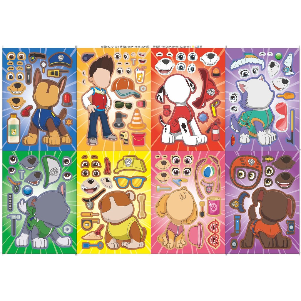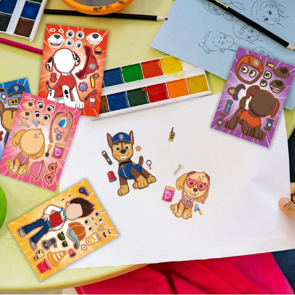 8 Peças Adesivos De Quebra-Cabeça De Desenhos Animados De Patrulha Pata Fofos-Rosto DIY Para Artesanato Infantil , Jogos