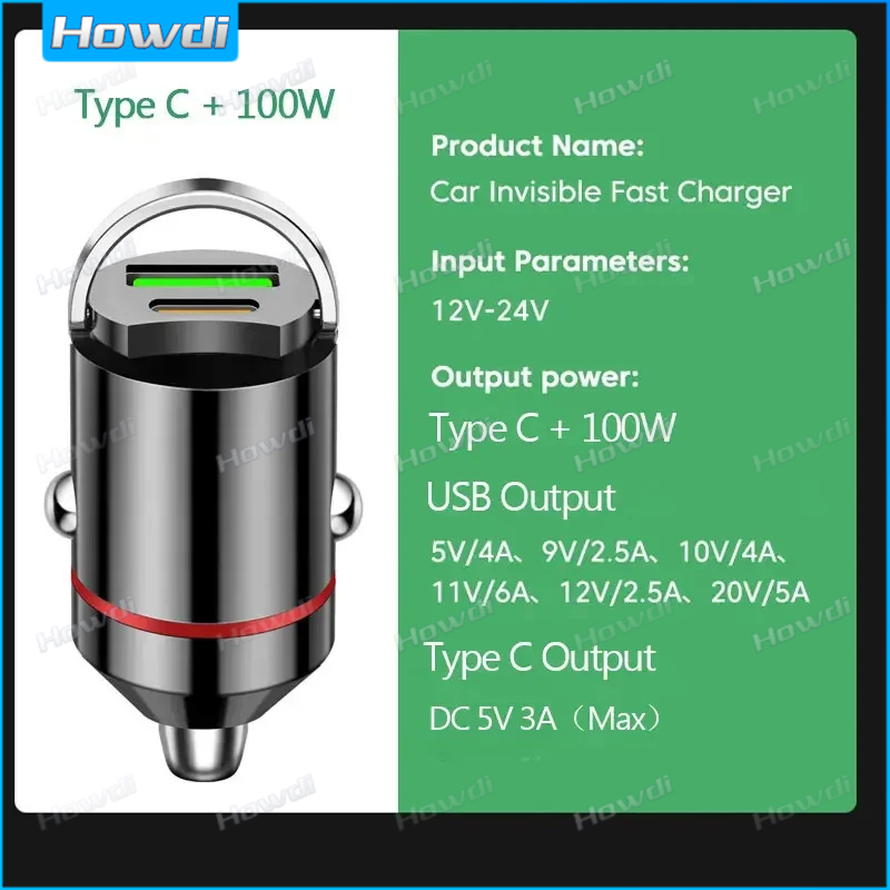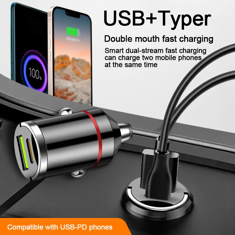 27W Portas Duplas Mini Carregador De Carro USB Carregamento Super Rápido Adaptador De Carga De Telefone De Liga De Alumí