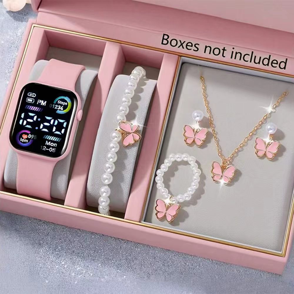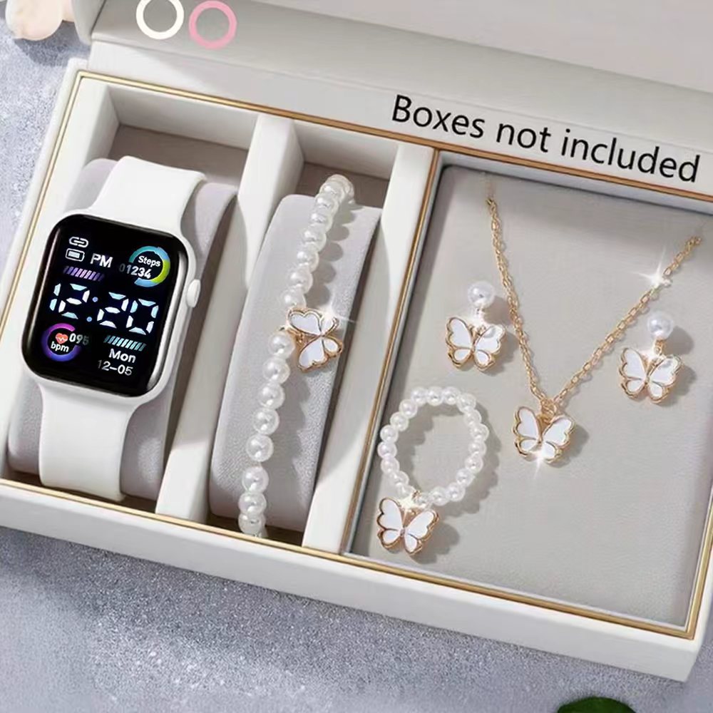 Conjunto De Relógio Eletrônico Emparelhado Com Joias Requintadas , Acessórios De Moda , Combinação De Presente Elegante