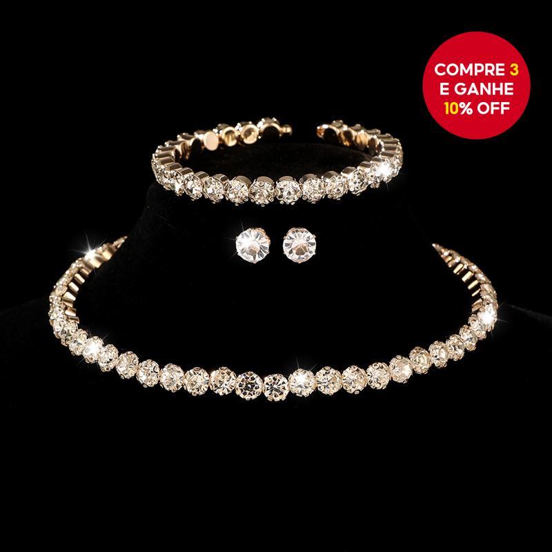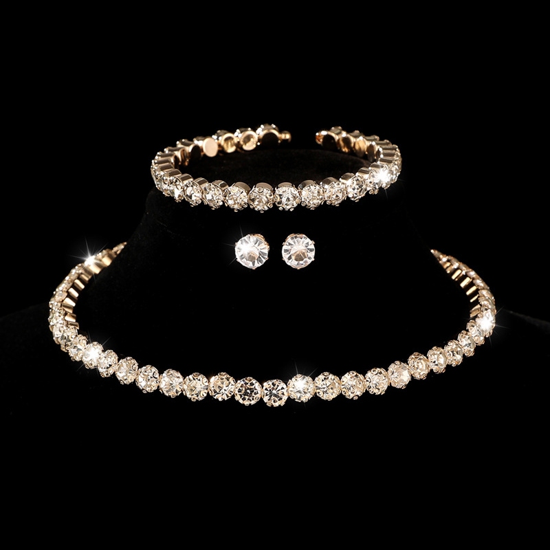 Conjunto De Joias De Cristal De Quatro Peças Para Mulheres Pulseira De Zircônia Branca Brincos Colar Festa Presente De N