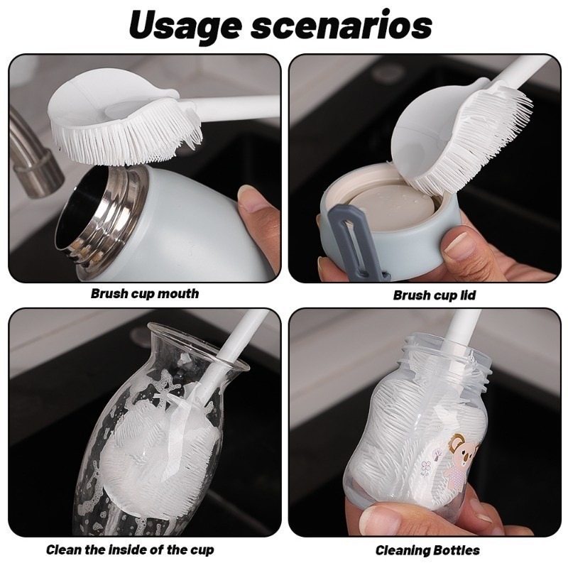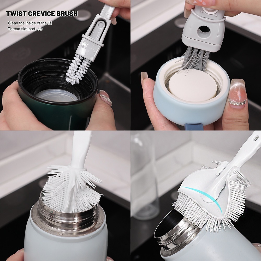 Escova De Limpeza De Silicone Macio Cinco Em Um-Cabeça De Dobrável Copo De Cabo Longo-Pendurado , Removível-Ferramenta D