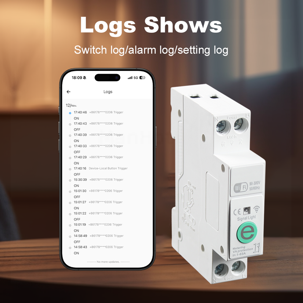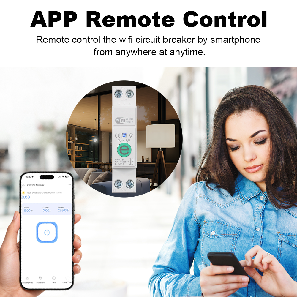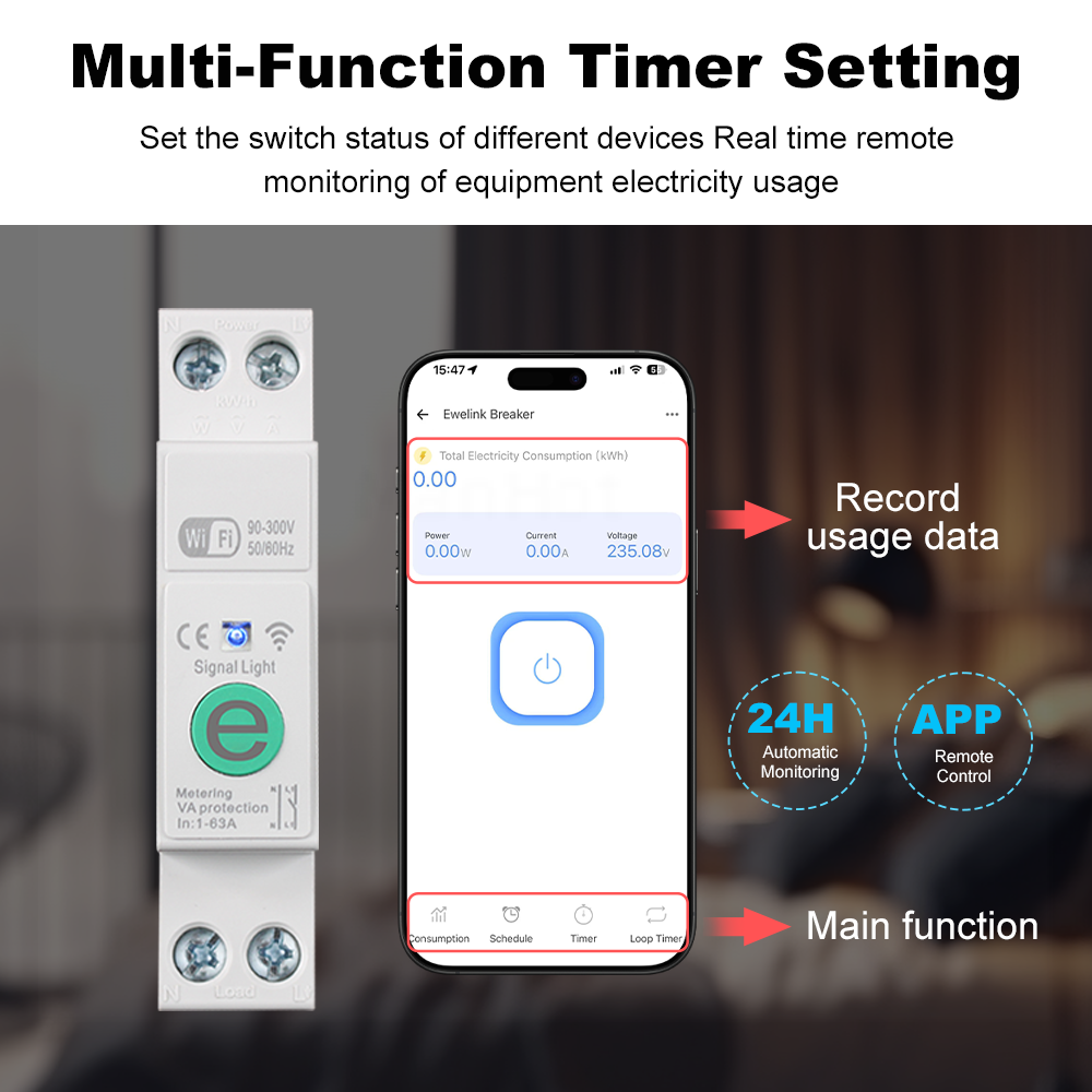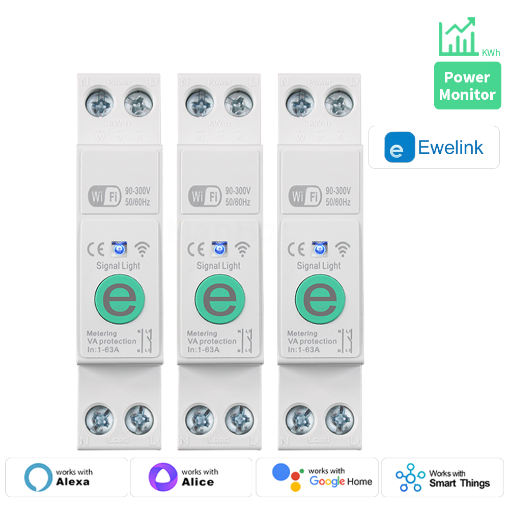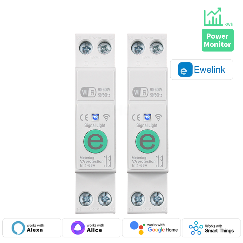 EweLink 63A Smart Din Rail Switch Disjuntor Inteligente com Medição de Tensão e Corrente Proteção Compatível com Alexa