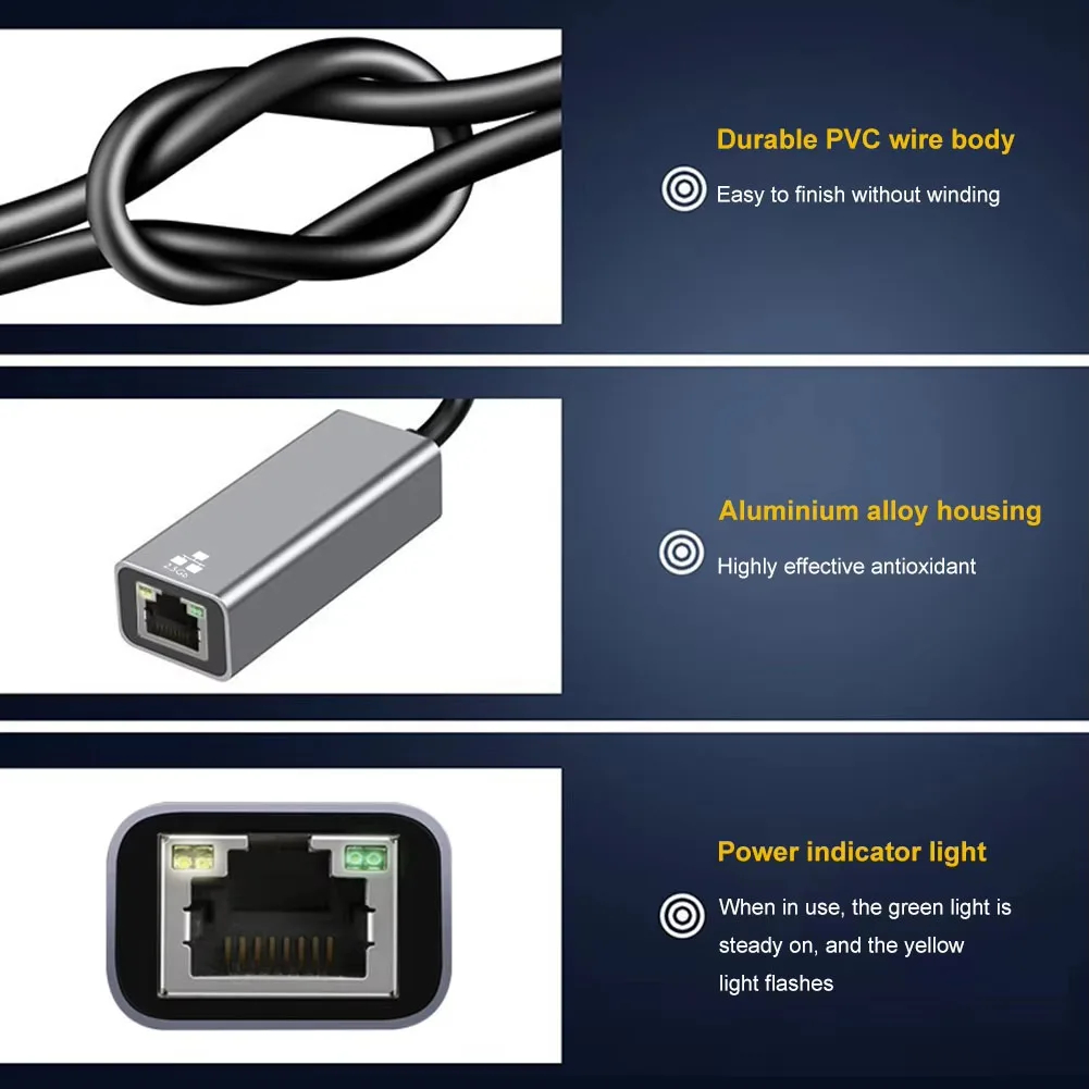 Adaptador Ethernet Usb Tipo C 2026 , 1000Mbps 2.5G Gigabit 3.0 Rj45 , Placa De Rede , Cabo Lan Para Macbook Pc