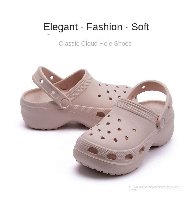 4cm Mais Alto Crocs Série Nuvem Sola Grossa EVA Resistente ao Desgaste Sandálias de Praia para Mulheres com Bico